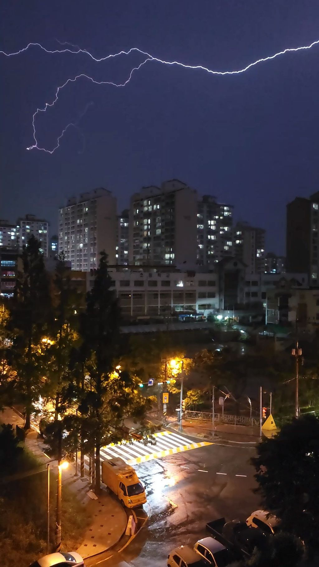 저는 자랑할만큼 예쁘게 찍은건 없구.. 집에서 천둥번개 칠 때 창문 닫다가 찍은 영상 캡처한거에요..그냥 번개가 너무 선명하게 찍혀서 올려봅니다. 🫣☺️