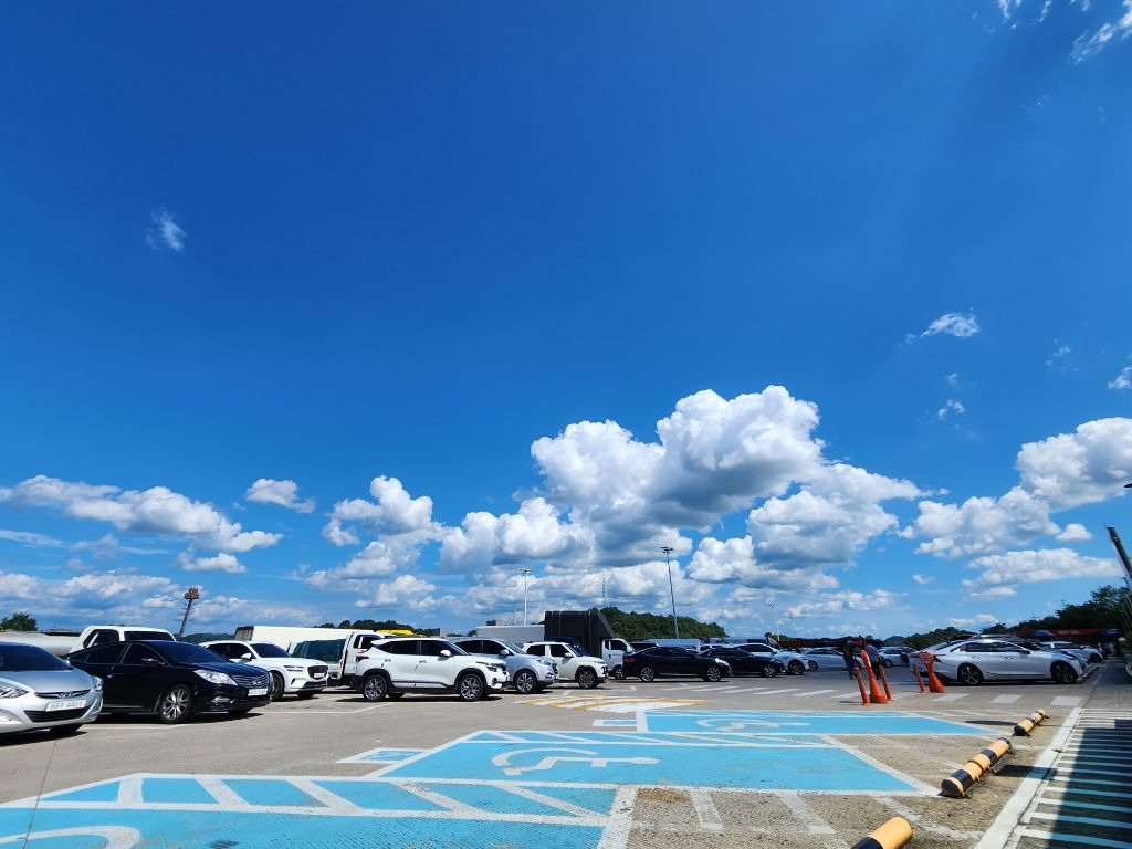 문경 휴게소에 잠시 들렀어요. 휴게소 주차장에서 바라보는 하늘 풍경이 예사롭지 않아요.