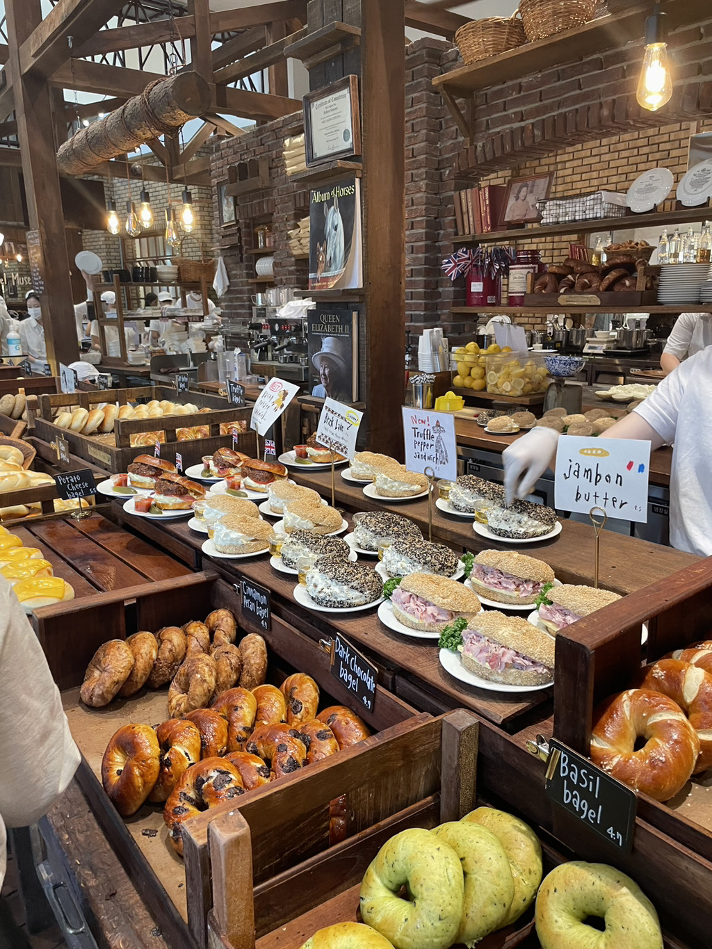 웨이팅해놓고 돌아다니다가 들어가면 젛아여할라피뇨들어간 베이글..👍👍