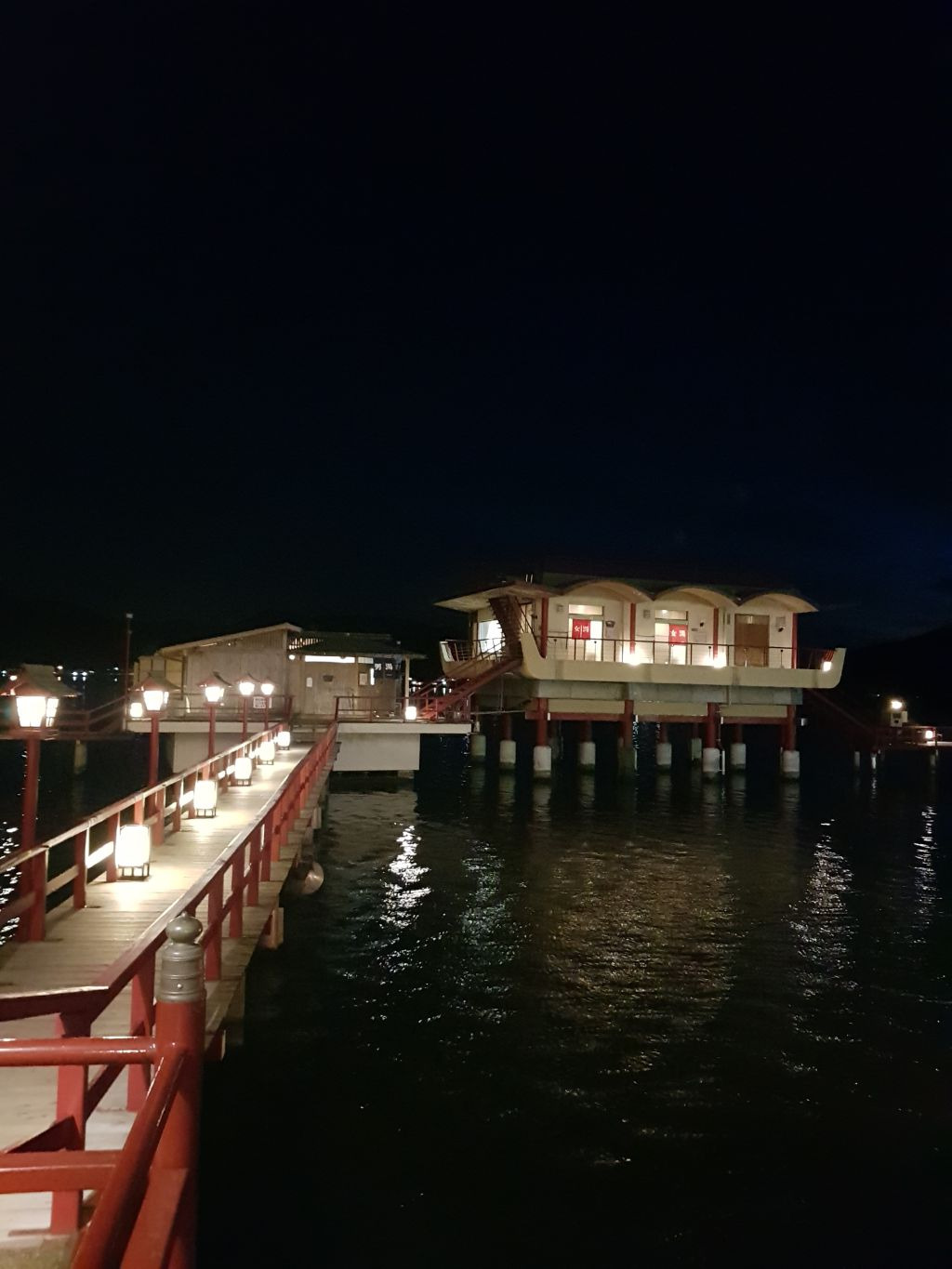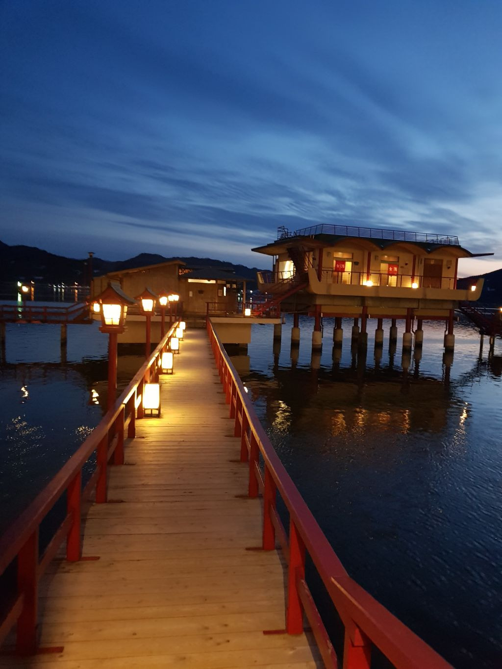 호수 위에 있는 노천탕은 정말 최고입니다.