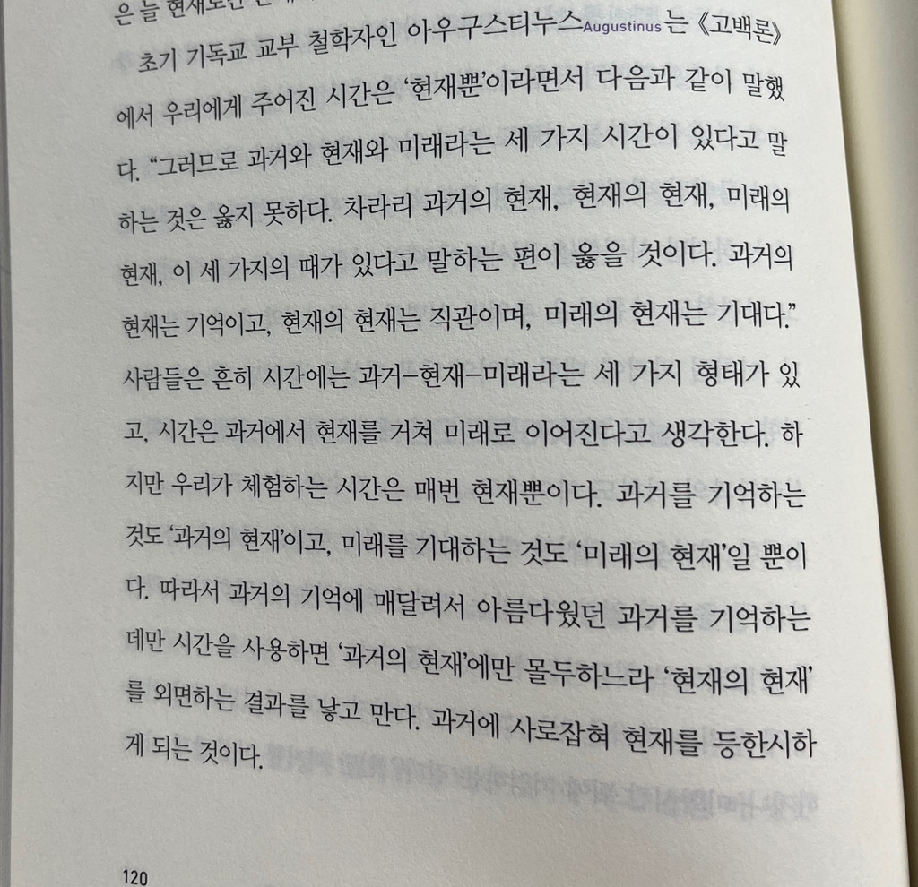 과거의 현재는 기억이고, 현재의 현재는 직관이며, 미래의 현재는 기대다.