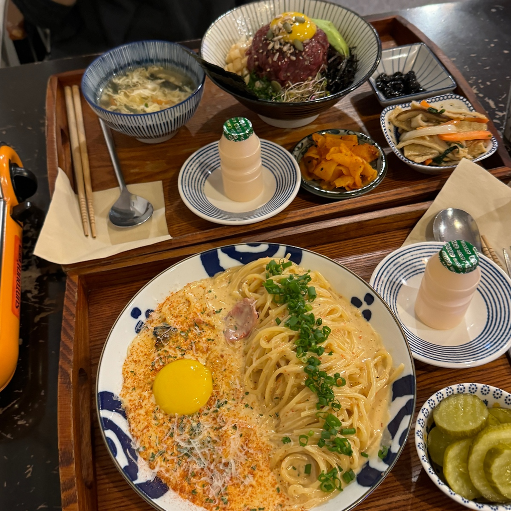 추천메뉴 : 태양파스타 13500원, 육회덮밥 13500원, 스키야키 15000원