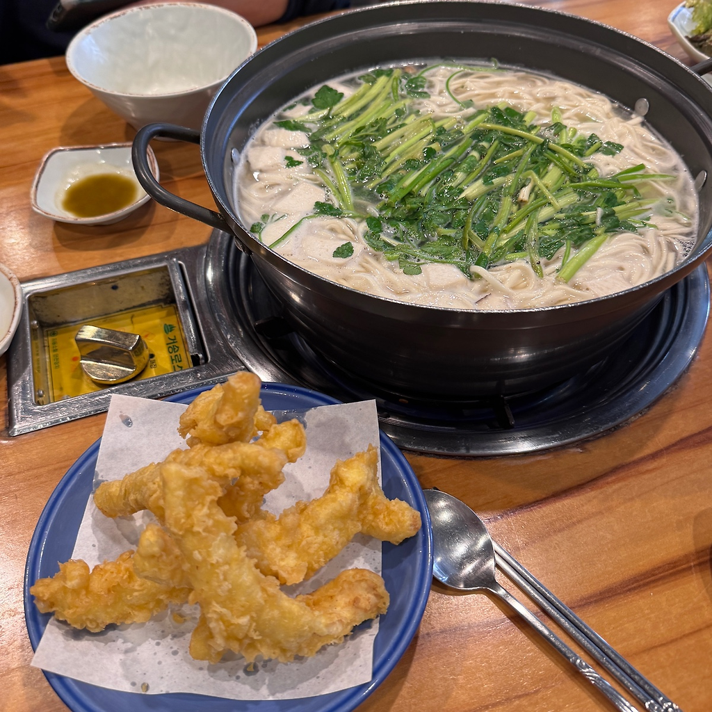양이 꽤 많은 편이라 여자 셋이면 칼국수 2인분에 튀김 작은거 시켜도 배부를듯