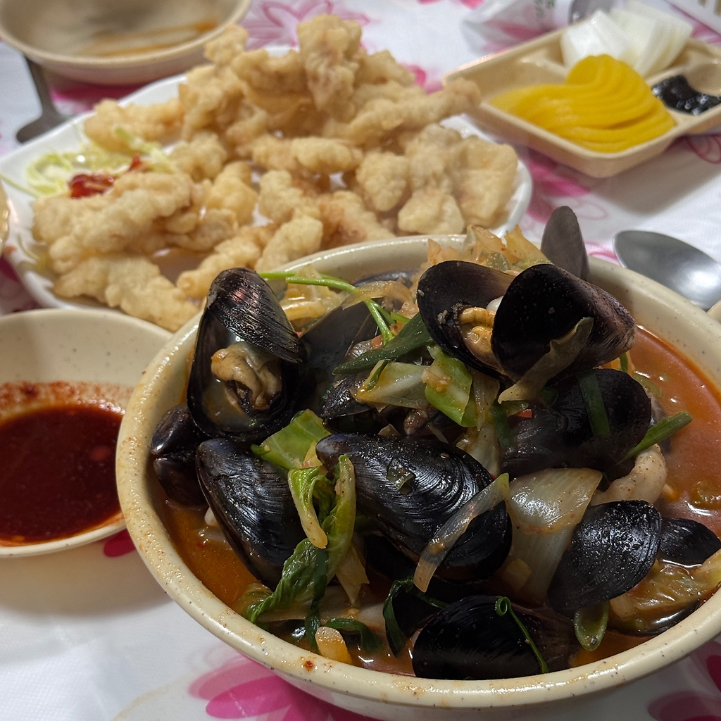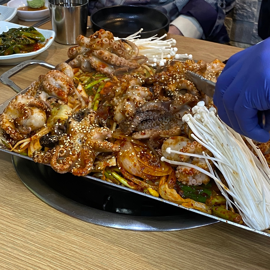 사진은 아구찜이랑 쭈꾸미철판볶음인데 쭈꾸미철에 어른들 모시고 가서 철판볶음이나 샤브샤브 먹으면 좋음