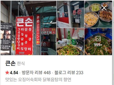 1. 큰손 (관양동 수촌마을에 있는 가게가 본점, 범계 근처는 2호점)