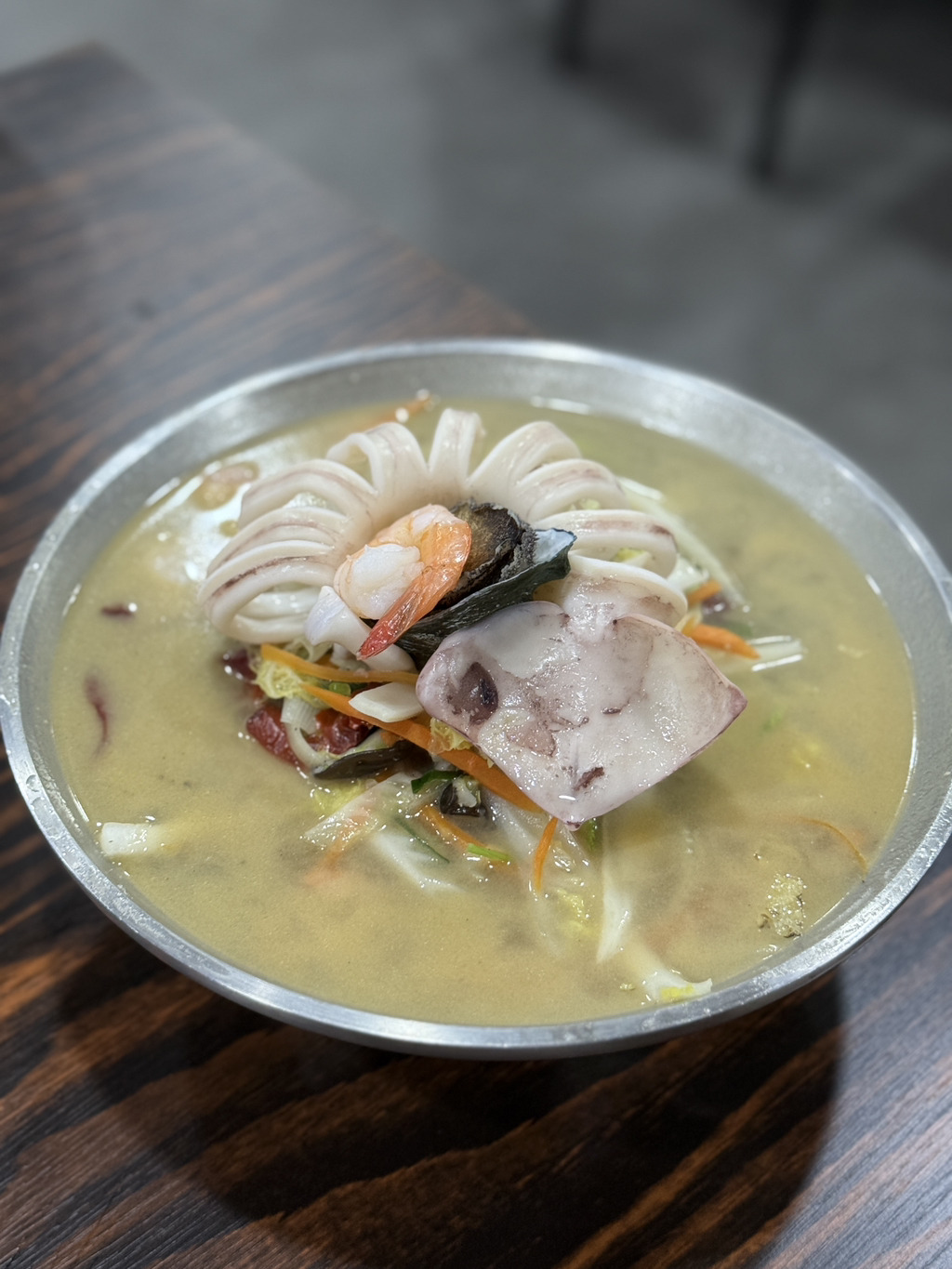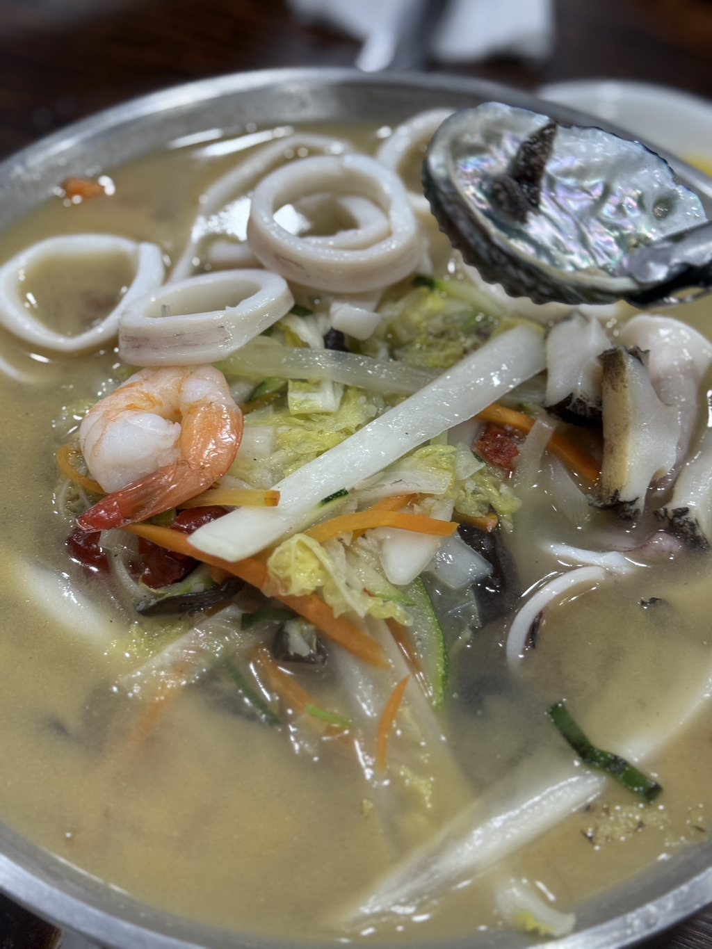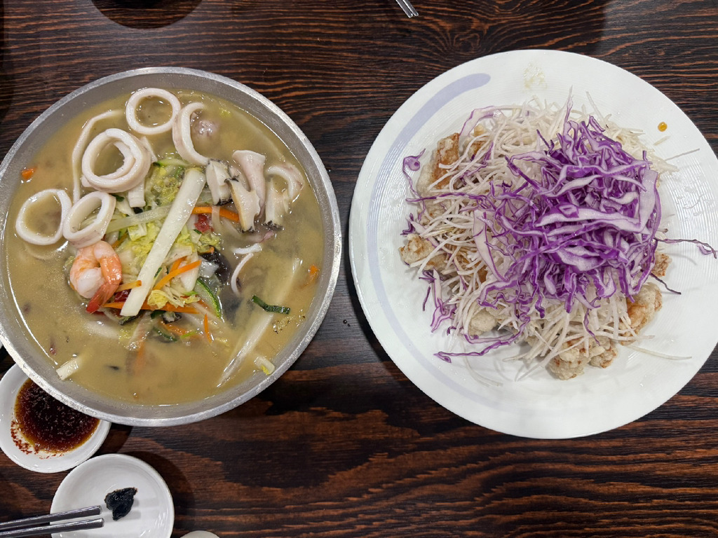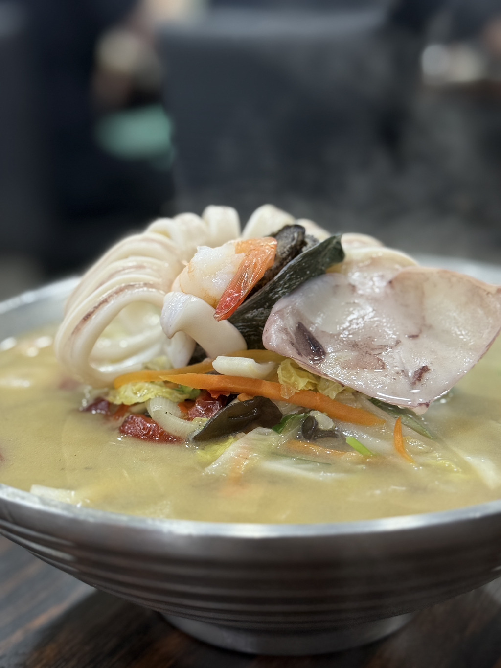 짬뽕은 국물이 깔끔하다. 채소가 많이 들어가서 국물이 시원함. 홍합같은 거 안 들어가고 오징어 새우 전복 같은 것들이 깔끔하게 들어가서 더 좋았다. 참고로 면도 뭔가 건강을 생각한 그런 면이었다.