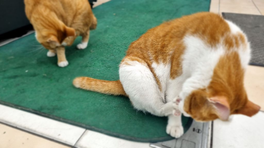 잠깐 비가 그쳐서 밖에 나갔다온 냥이들.