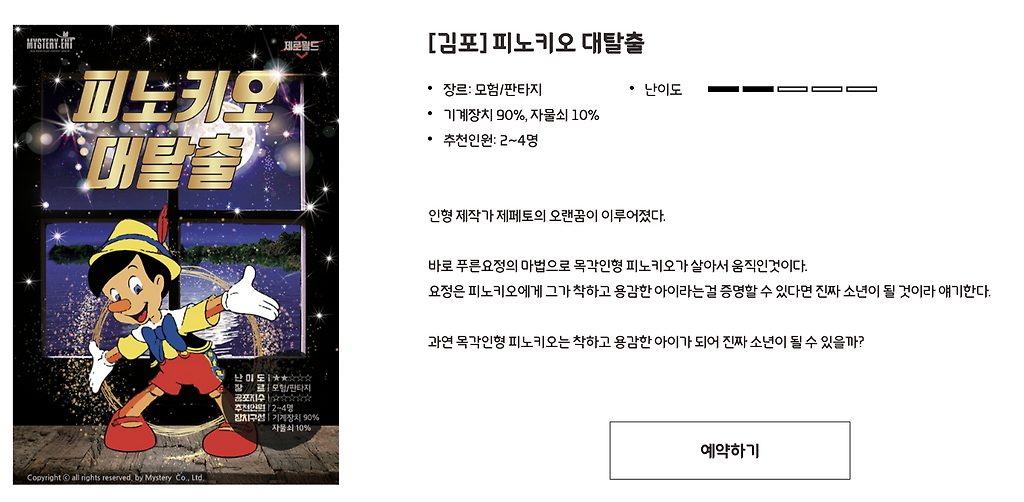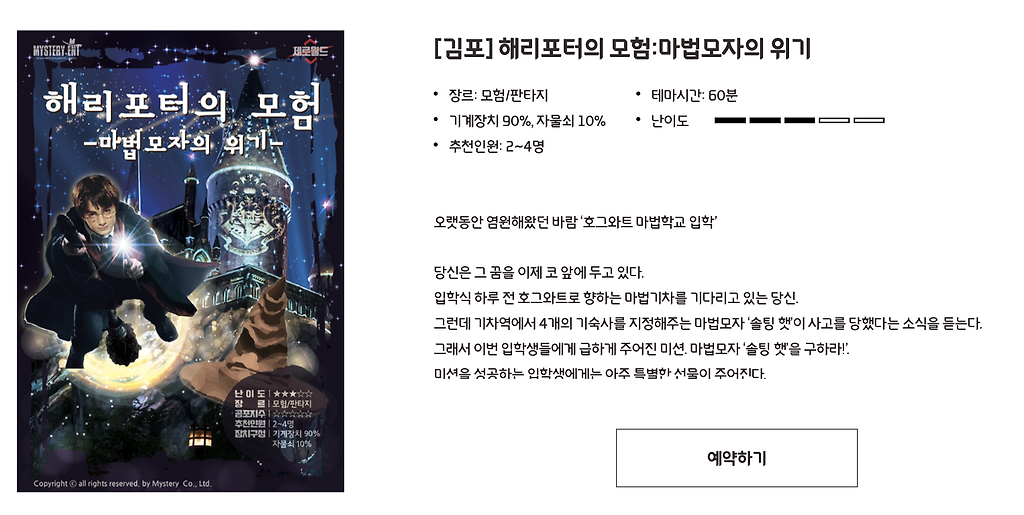 김포/서현 제로월드 - 피노키오 대탈출, 해리포터의 모험