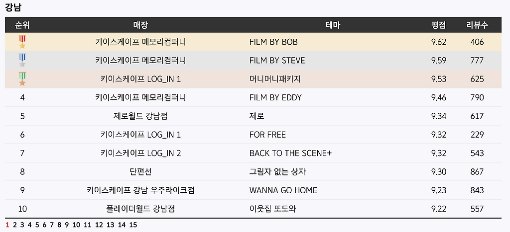 코방 기준 평점 순위임(절대적인 지표 아니라는 뜻)