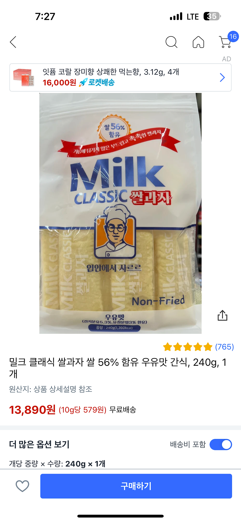 사또밥비스무리한 식감에 애기 분유맛 느낌