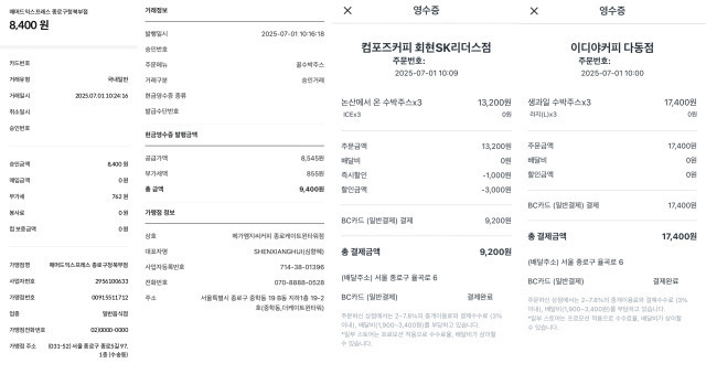 서울 시내 카페 4곳에서 주문한 수박주스. 김남명 기자