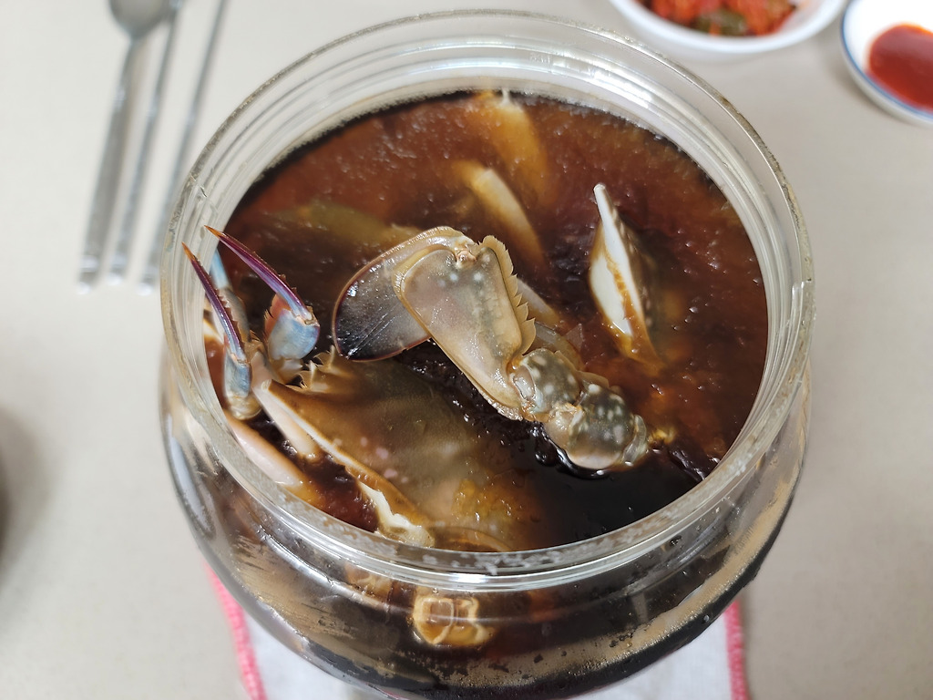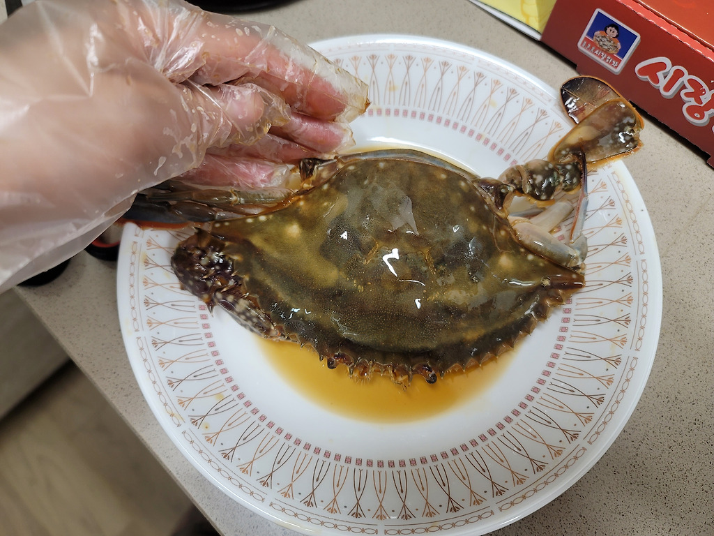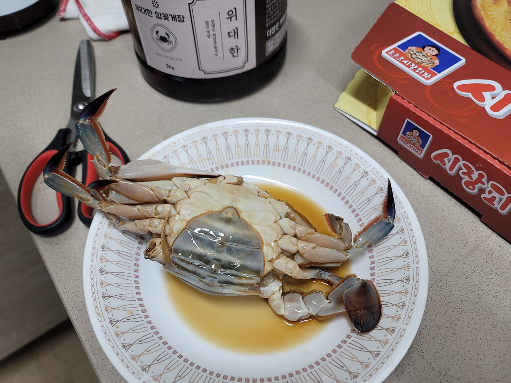 아파트에 주민분이 지인 게장 소개해서 샀는데..맛있더라.. 진짜 여태 먹었던 게장 중 제일 맛있는 듯.양념게장을 나중에 주문해 봐야지.간장이 맛있나?집사람 눈치 보며 다 먹고 한 통 더 시킴.총 5마리 들어있는데.. 다 내 거.우리 집 애기는 못 먹고. 집사람은 안 먹어.그래서 집사람은 자기 때문에 내가 해산물 못 먹으니 사 먹으래.슬슬 간장게장이 또 생각이 난다.