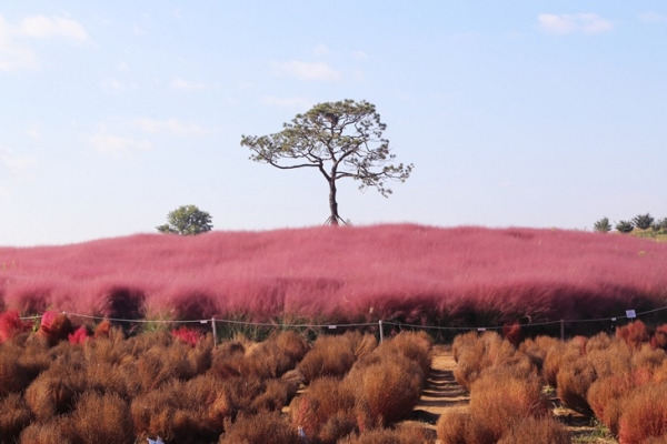 핑크뮬리의 정식 명칭은 '분홍쥐꼬리새'인데요. 북아메리카가 원산지인 핑크뮬리가 한국에 들어온 건 2014년경이에요. 10년이라는 짧은 기간에 '가을 풍경의 아이콘'으로 자리 잡은 비결은 뭘까요?