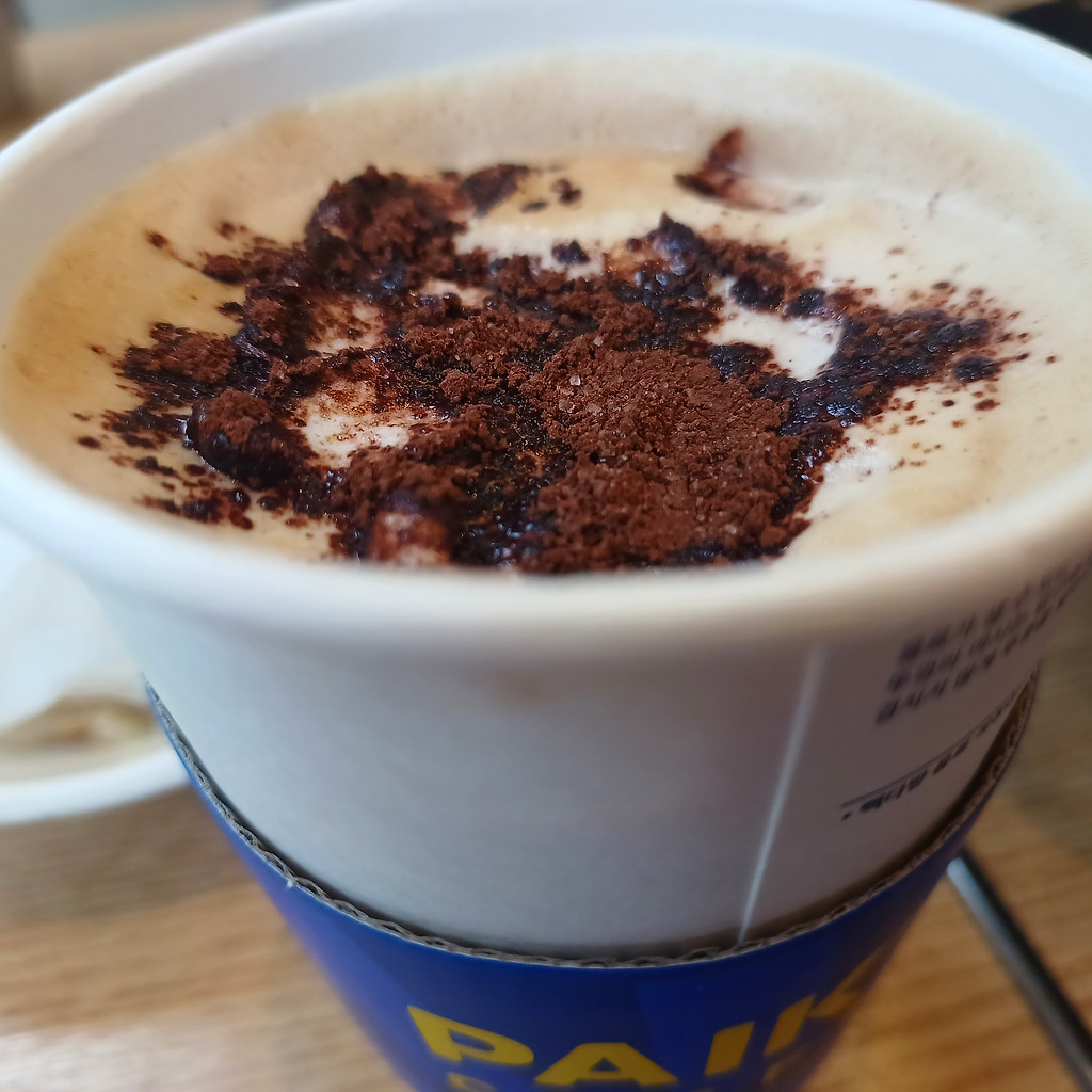 초코릿 뿌린 빽다방 카라멜마끼아또 입니다