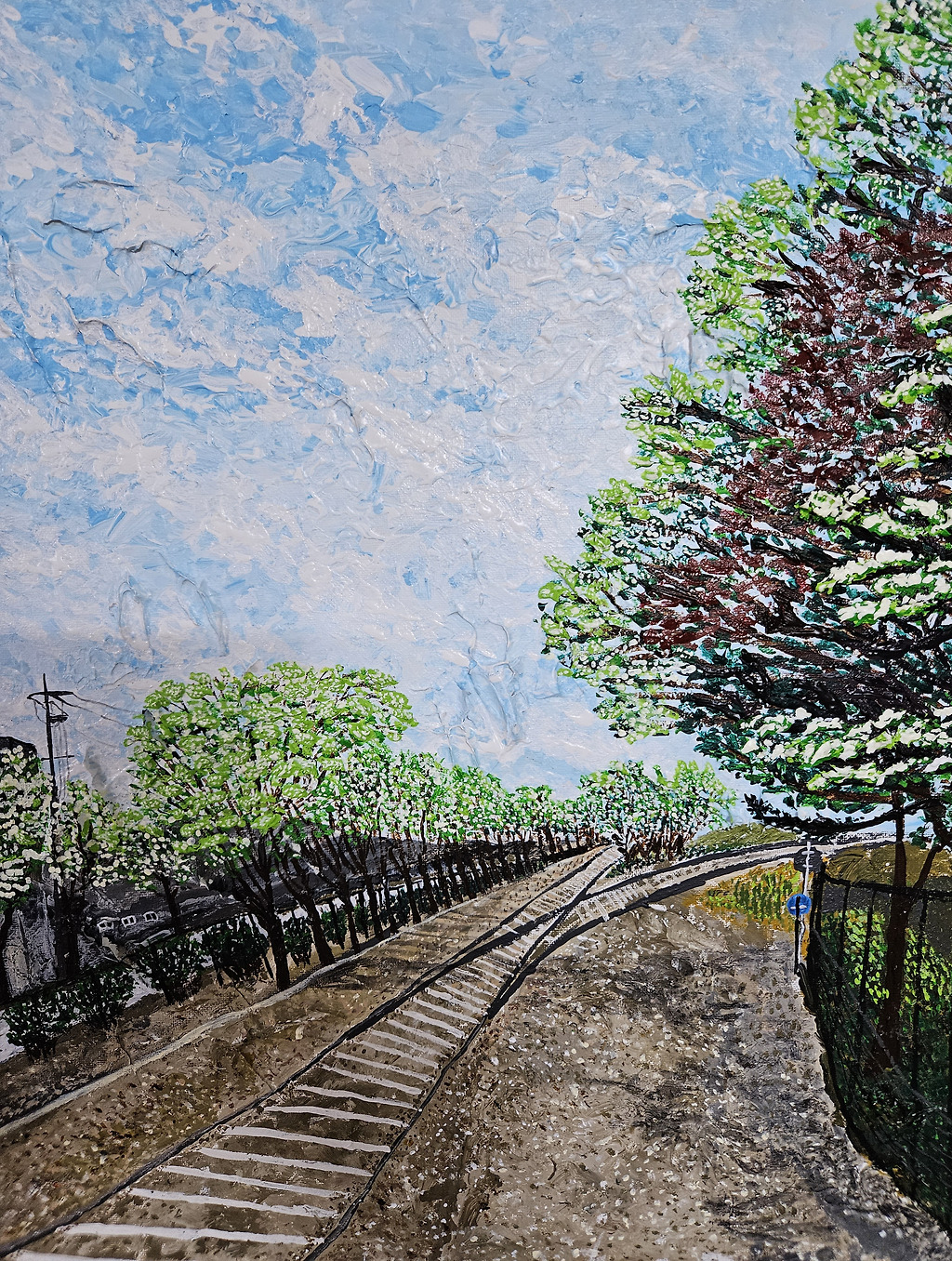 캔버스에 아크릴 물감과 젯소로 그렸어요