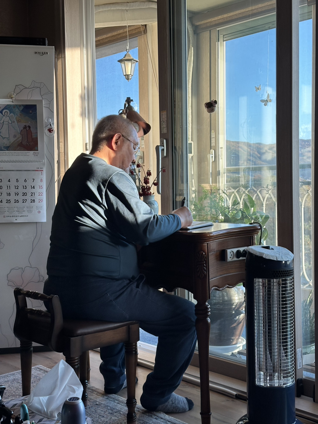 댓글 16남편은 매일매일 일기를 쓴다. 확인은 못해 봤지만 대충 15년은 족히 넘은 듯하다. 재밌는 것은 일기 쓰는 시간이 정해져 있는데 오후 4시면 거실에 있는 책상으로 가서 일기를 쓴다. 하필 왜 4시냐니까 그 시간이 일기 쓰기 딱 좋은 시간이란다. 아아~술을 워낙 좋아해서 그 시간에 써야 맨 정신에 쓰게 되는 것인가 보다. ㅋㅋ 낮술은 잘 안 하니까 말이다. 난 원래 글씨가 개발새발인데 남편 글씨는 완전 정리 정돈된 공무원 글씨체로 또박또박 쓰는데 기가 막히게 명필이다. ‘매일 그날이 그날인데 뭘 그렇게 매일 써?’ ‘그냥 쓰다 보면 한 장이 채워지네.’ 그래도 글솜씨가 꽤 있나 보다. (팔불출) 여태까지 쓴 일기장이 엄청 쌓여 있을 텐데… 가끔은 오늘 일기 읽어줄까 하며 읽어주기도 하는데 그런지가 꽤 오래되었네? 무슨 비밀이라도 생긴 거 아냐? 살짝 뒤를 밟아 봐야 하나? ㅋㅋ 일기를 처음 쓸 땐 그냥 일반 공책에 썼는데 언젠가부턴 남편에게 일기장을 선물했다. 해마다 요맘 때면 새해 일기장을 선물한다. 이번에 선물한 빨간 표지의 일기장엔 어떤 하루하루를 채워 나갈지. 노년의 건강하고 행복한, 저녁 노을처럼 아름다운 하루하루를 채워가기를 소망한다. 감사일기 끝.