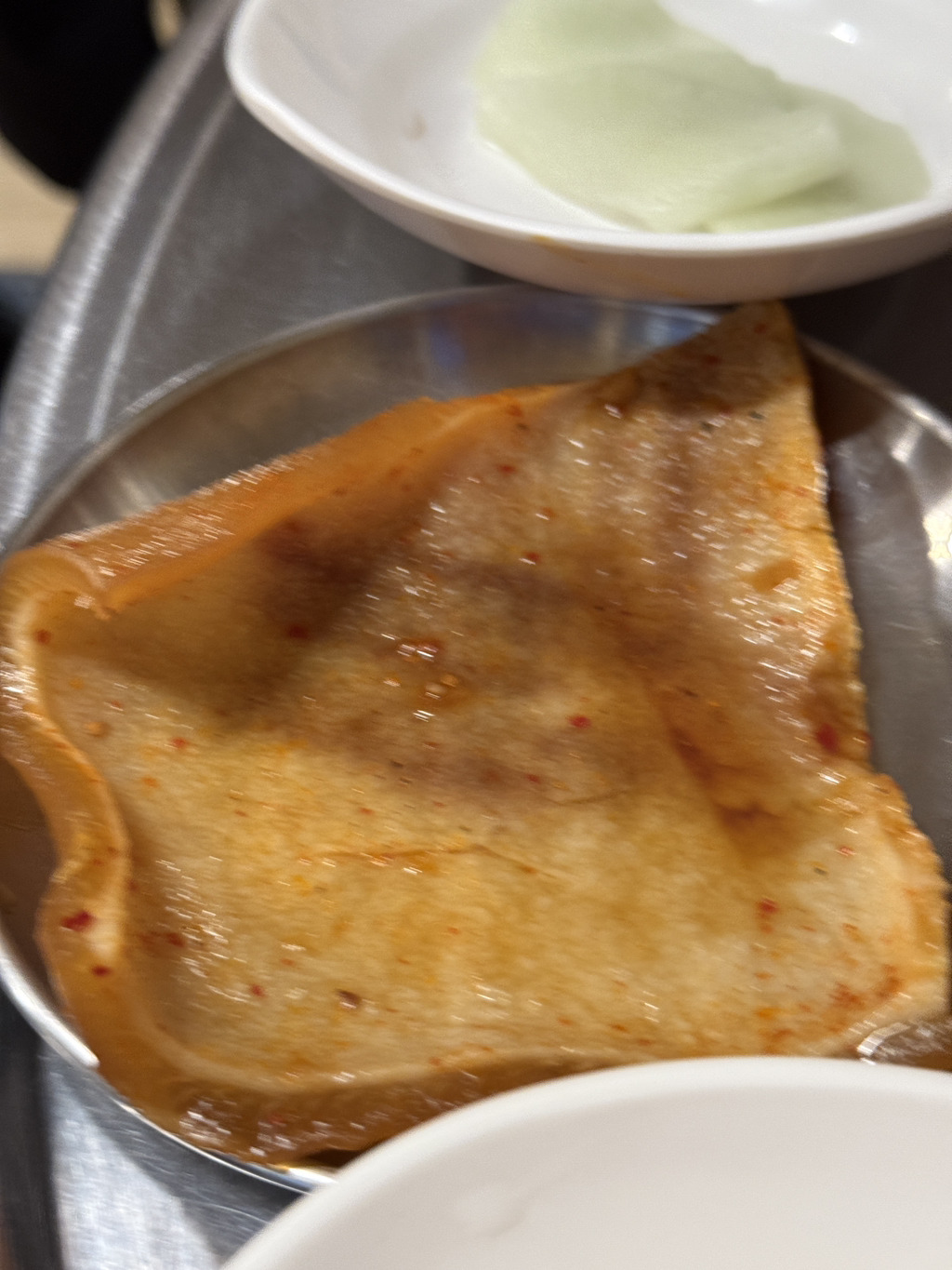그리고 서비스로 나온 돼지 껍데기 (가장 마지막에 구워 먹으라고 안내해주심)