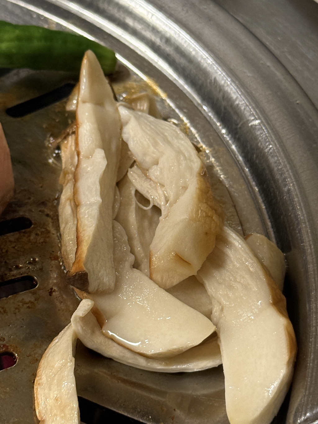 처음 시킨 고기에는 꽈리꼬추와 새송이 버섯도 같이 나옴.