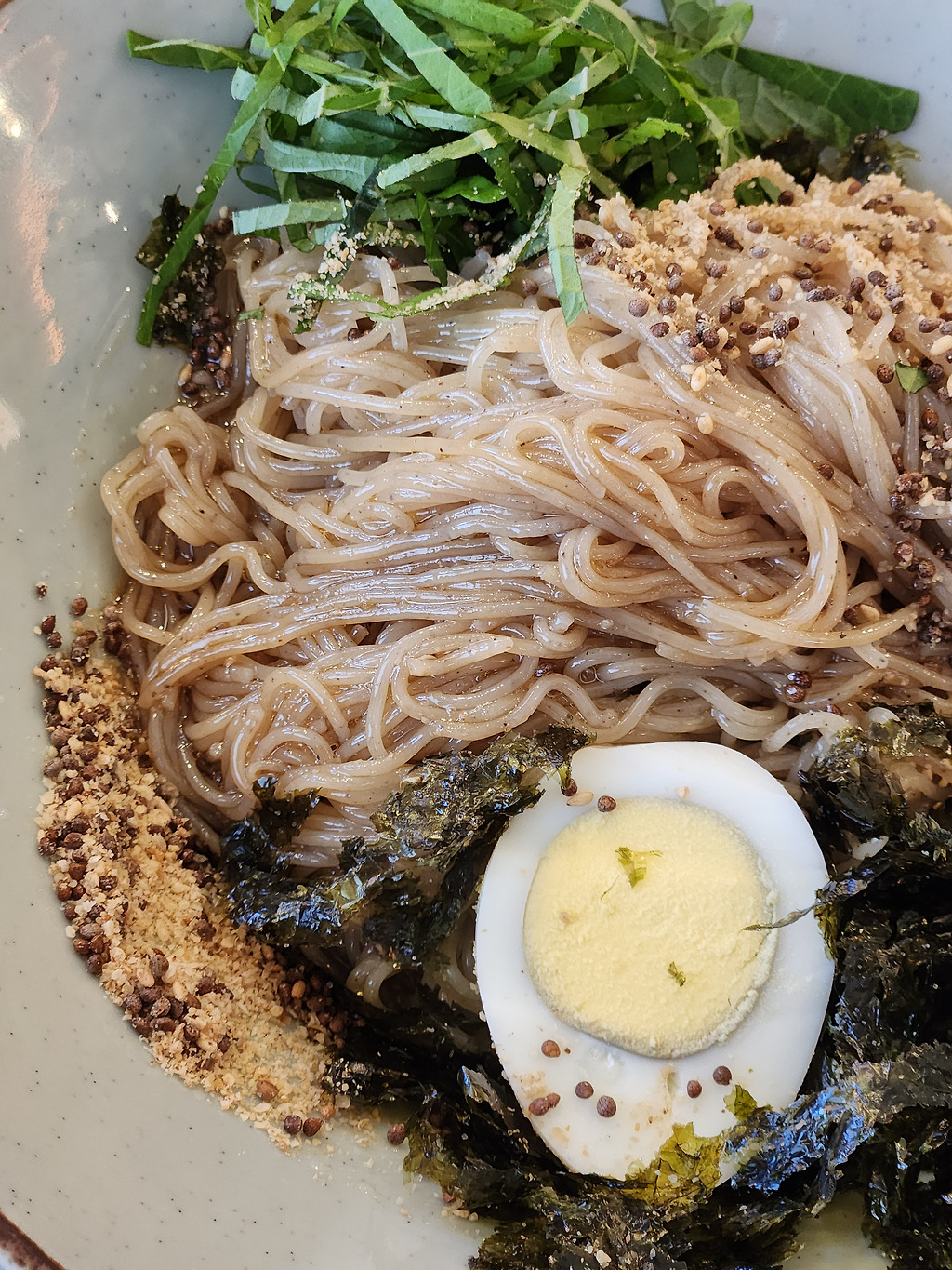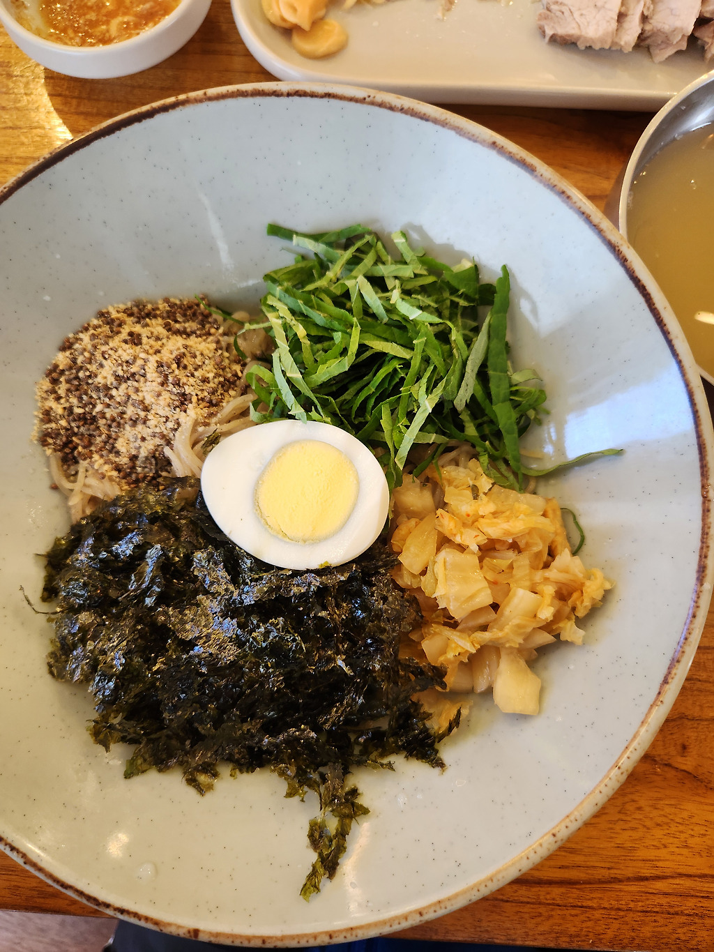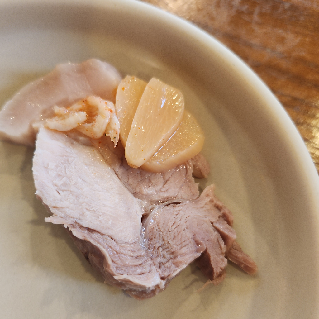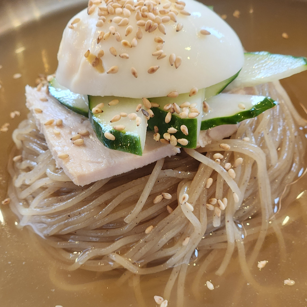 맛있다. 약간 슴슴한데 그렇다고 평양냉면보다는 덜 슴슴한 약간 간이 있는 냉면이라고 할 수 있을 거 같다.