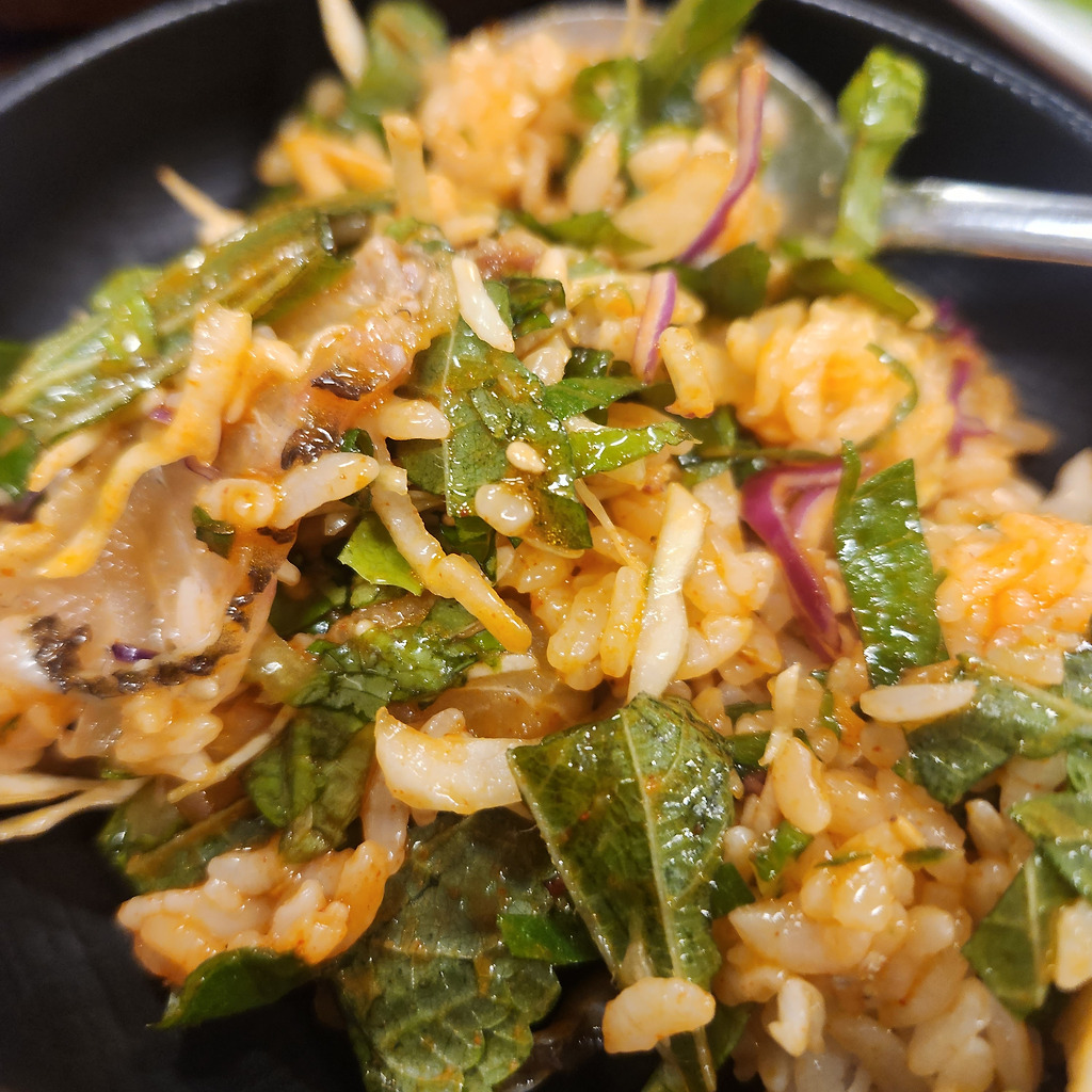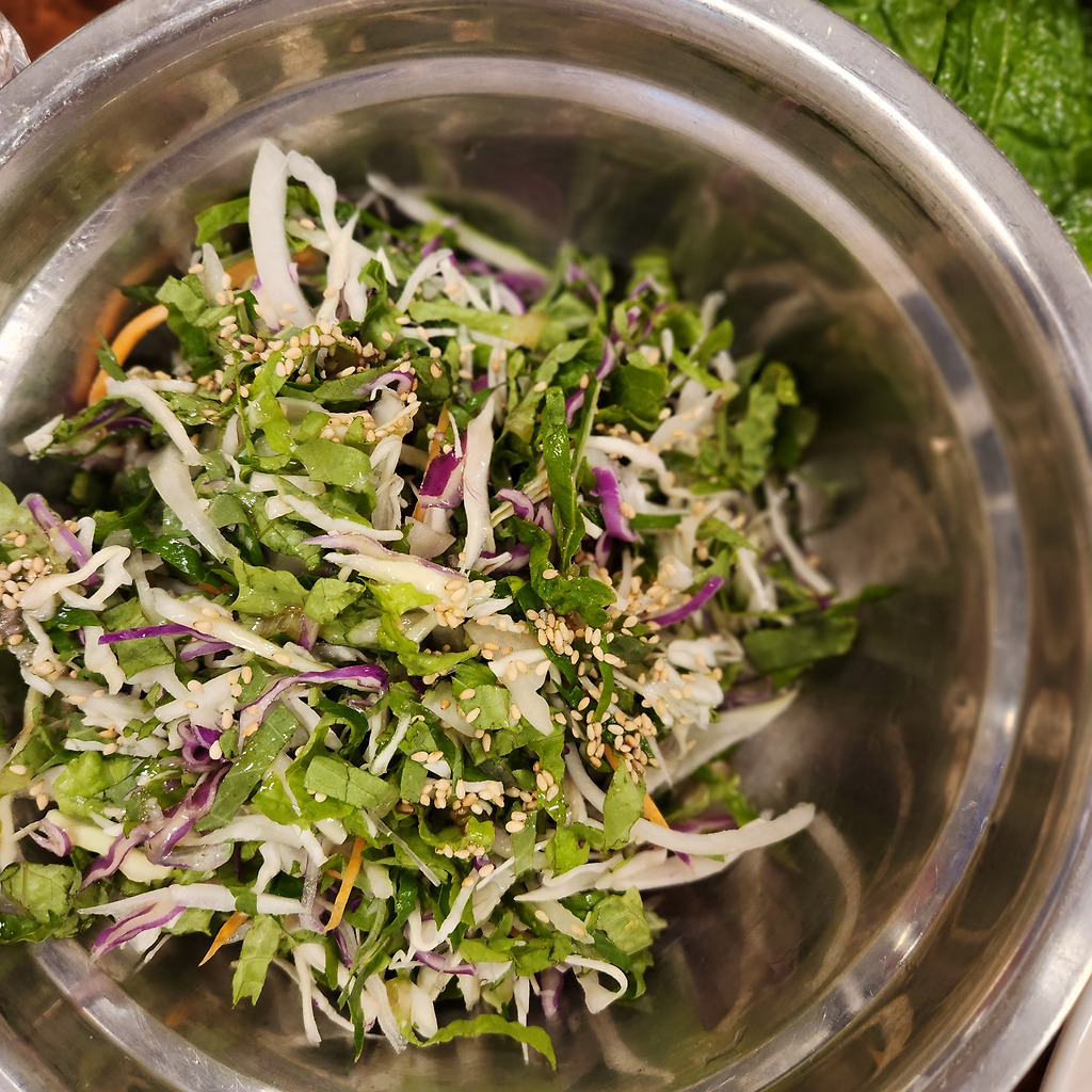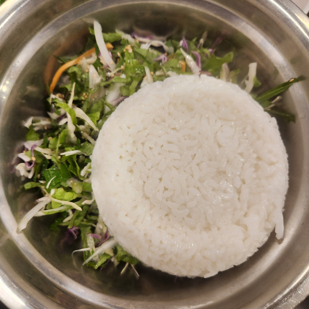 그리고 어느 정도 먹다가 야채+밥 을 시켜준다. 그럼 이렇게 야채와