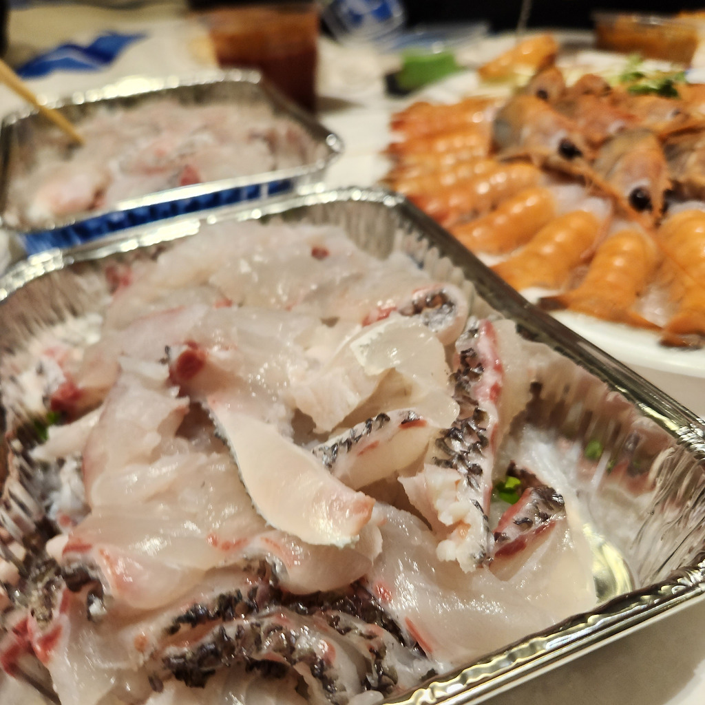 딱새우는 다른 집에서 시켜왔고, 참돔은 분명 소짜리로 시켰던 거 같은데 저렇게 양껏 담아 주신다. 진짜 생선만 먹다가 지칠 정도로 담아주신다.
