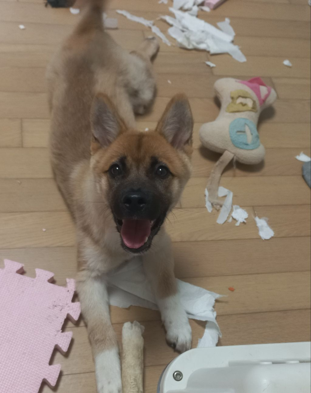 2. 방에 혼자 갇혀있는 걸 불안해해요, 그냥 집에 자유롭게 놔두면 혼자 뛰어다니면서 고양이처럼 잘 놀아요.