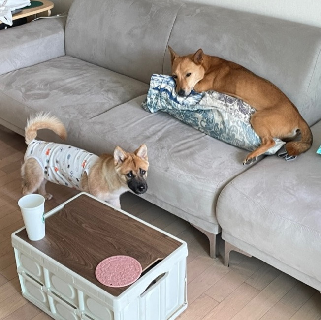 (얌전한 반려견은 모코가 놀자구해서 스트레스 받을지도 몰라요…)