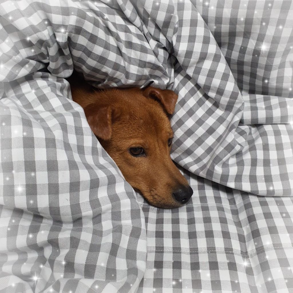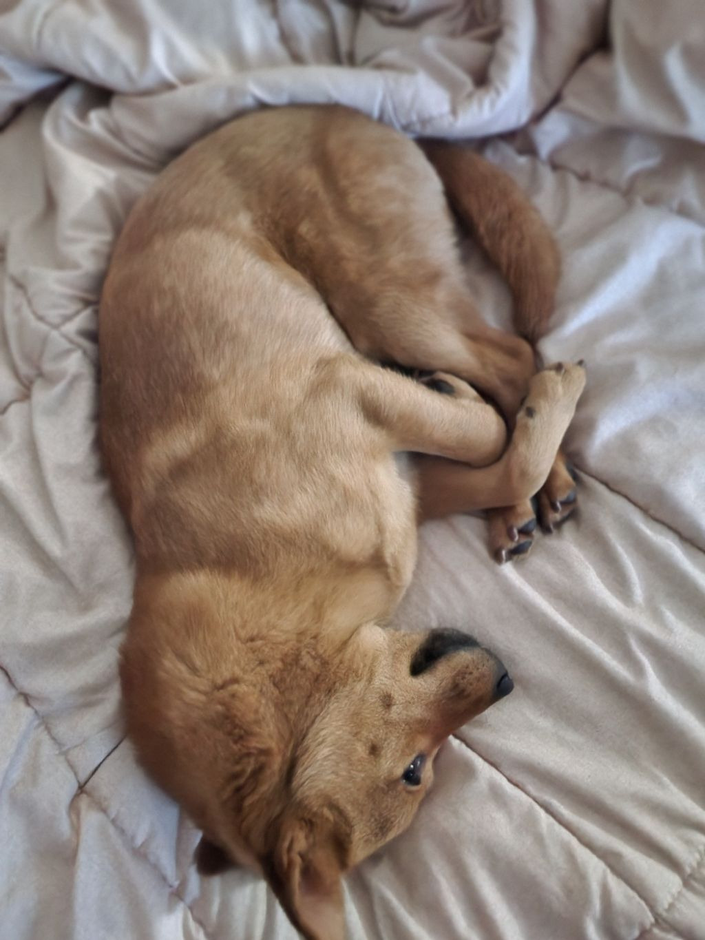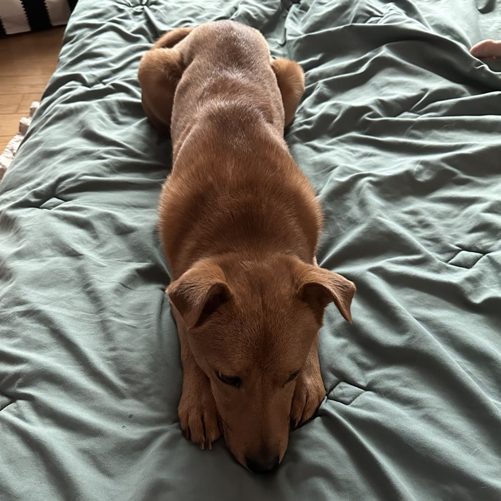 -거실에서 큰 매트리스 깔고 엄마랑 같이 자요. 침대에 올라가는거 좋아하는것 같아요. 사람옆에서 자는것도 좋아해요. 저희집 온 첫날 제 방 침대에서 같이 잤어요😍