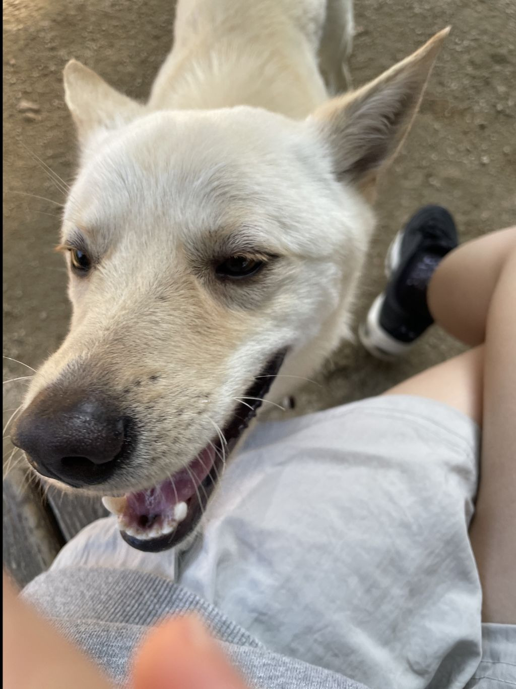 사람들을 좋아해요 냄새 맡으러 먼저 다가가거나 사람들이 다가와도 가만히 있고 냄새 맡고 나면 꼬리 흔들 흔들 해요 ㅎ 어린 아이는 지나갈때는 괜찮은데 갑자기 다가오면 꼬리 내리고 피하고 작게 으르릉 거립니다 ㅜ