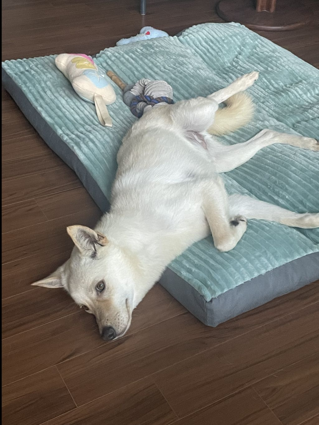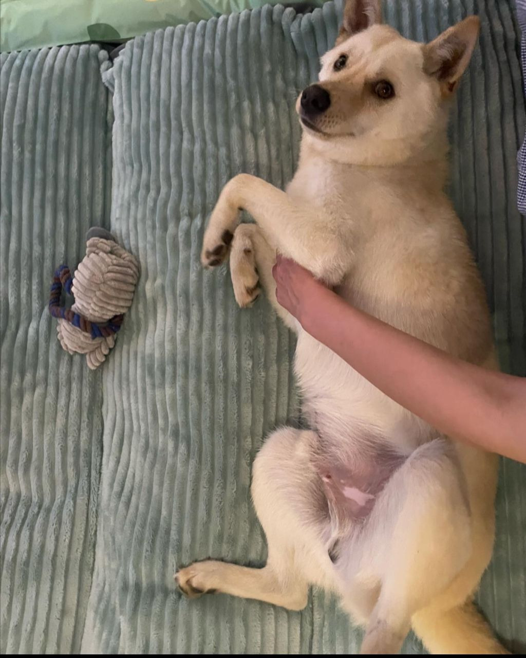 너무 많이 껴안아서 귀찮아 한적은 있지만 누워 있을 때 만지면 바로 다리부터 드는 애교쟁이에요
