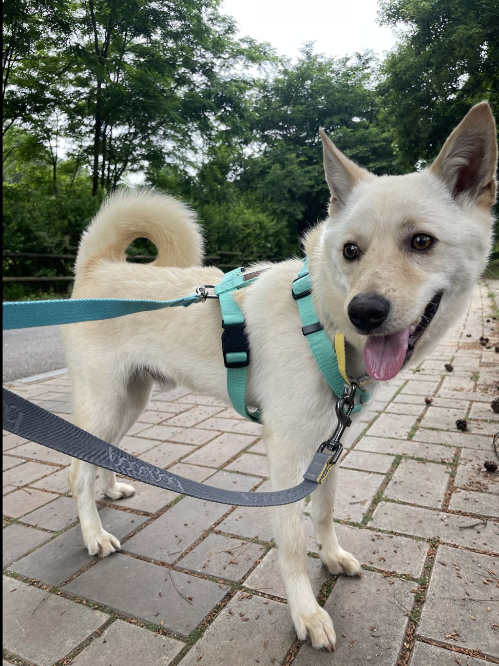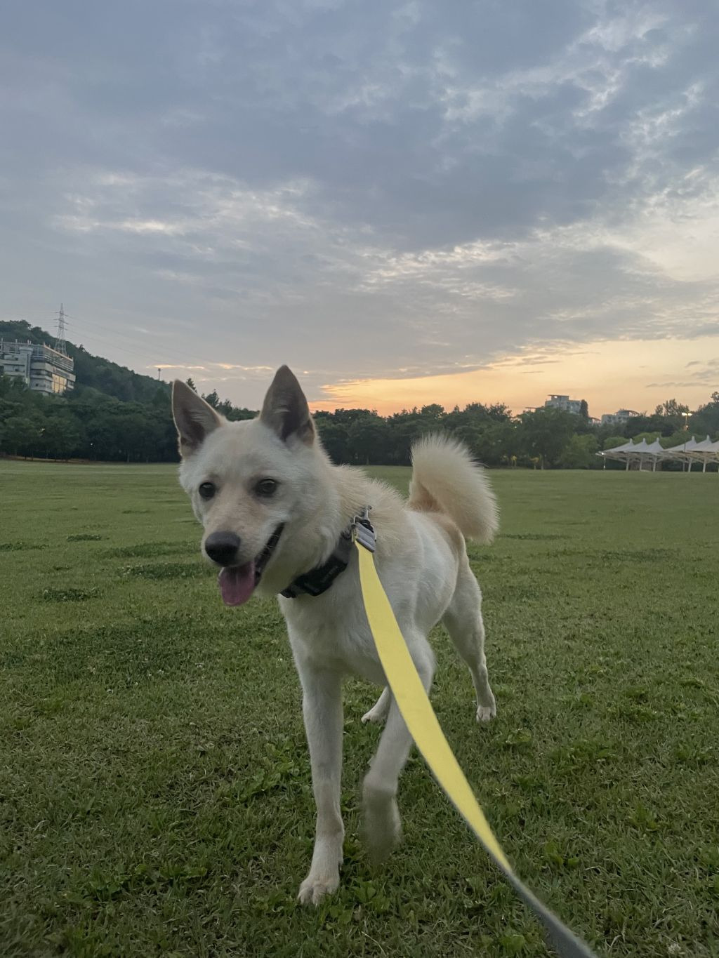 아침 저녁으로 산책 하는데 퇴근 하고 오면 오래 배변을 참아서 그런지 첨에 급하게 나가려고 하는 편이에요. 기분 좋을 때는 막 빨리 가려고 하는데 목줄로 조금만 당겨서 컨트롤 하면 알아서 잘 산책 합니다~ 산책 교육을 특별히
