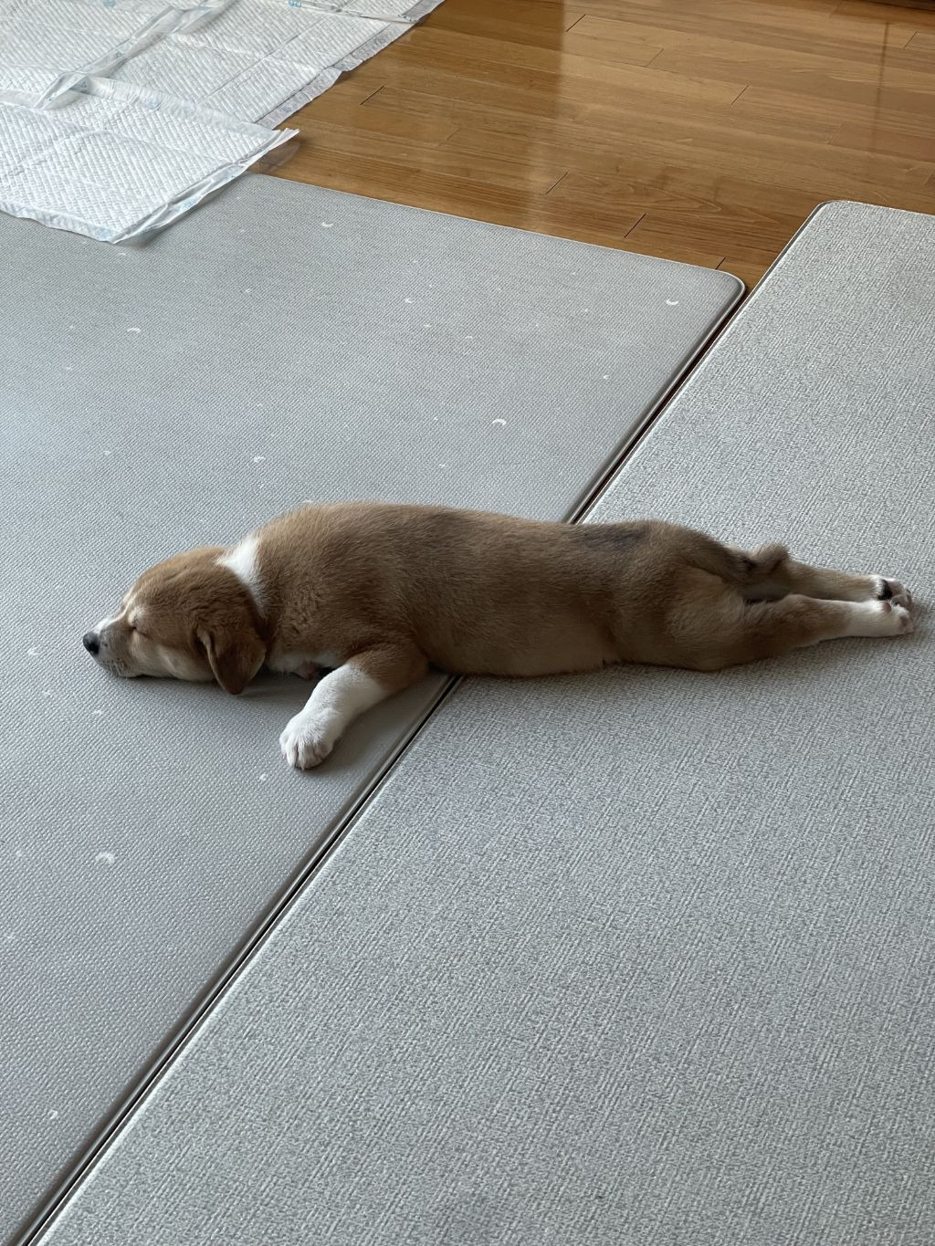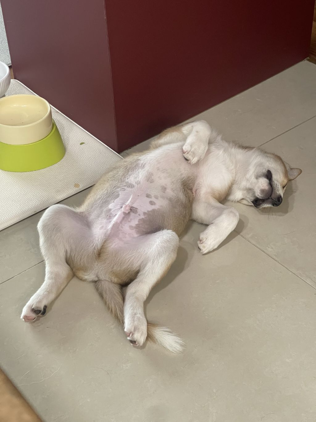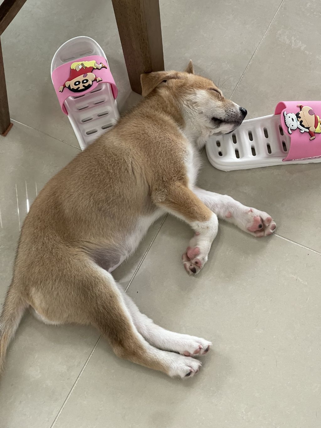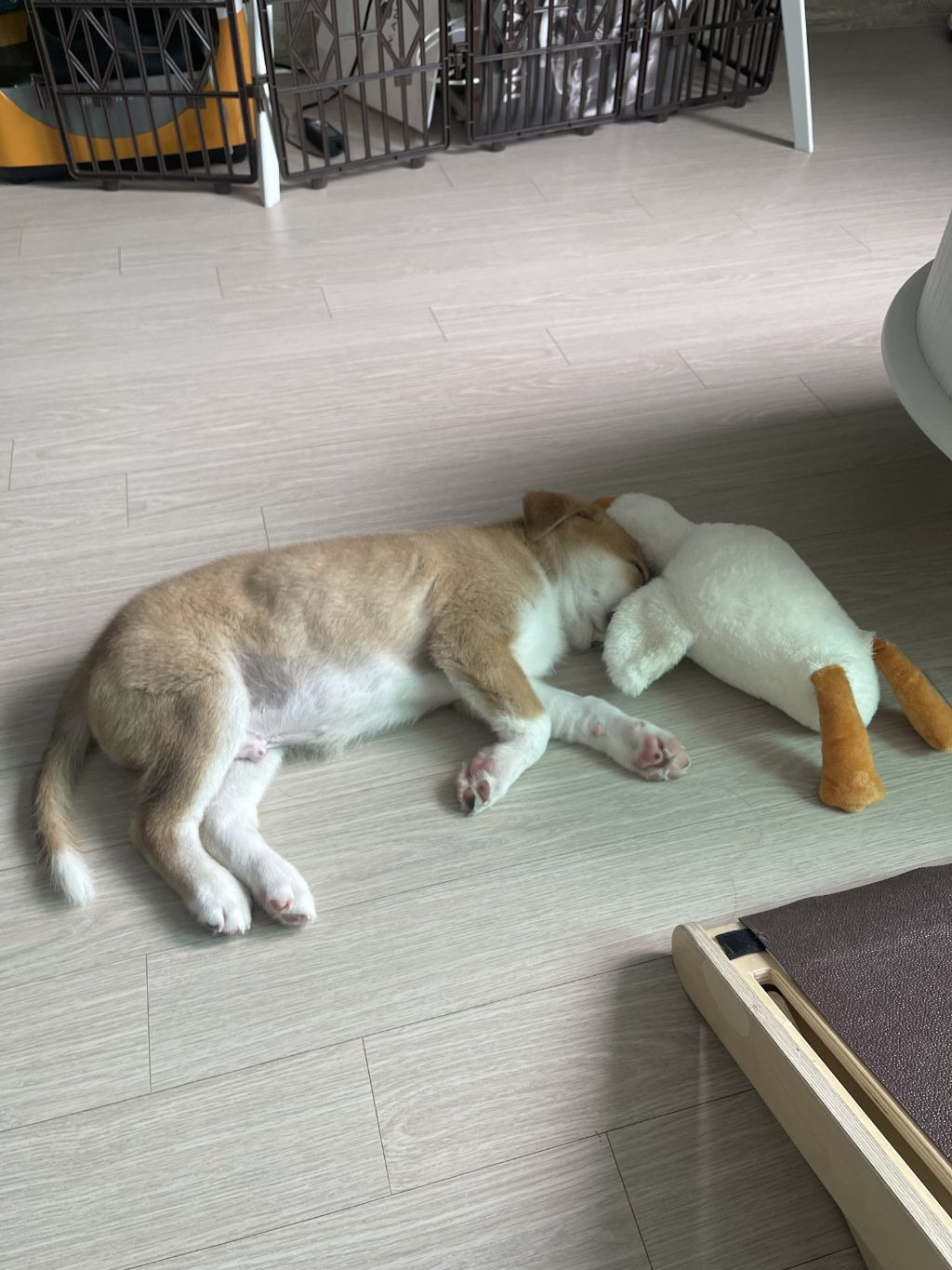 대리석이나 시원한 곳에서 자는걸 좋아함. (울타리 교육예정으로 추후에는 울타리에서 재울 예정)