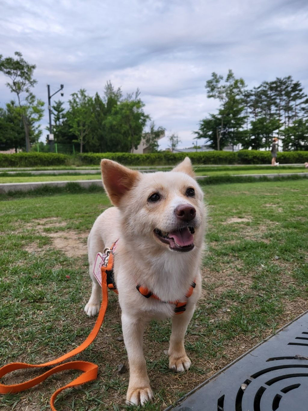 산책가서 너무 신나서 뛰어다니기는 하는데 생각보다 금방 지치고 말도 잘들어요