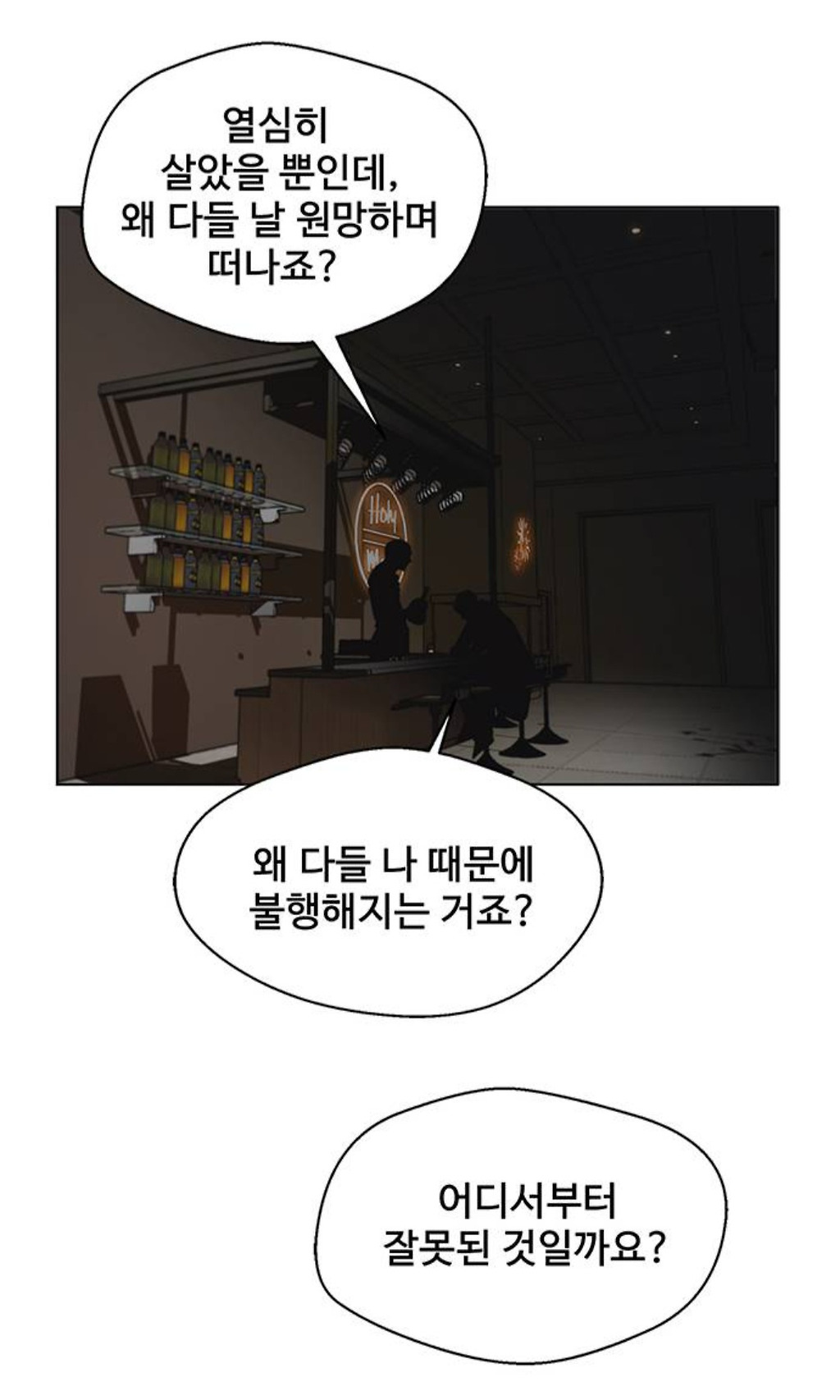 그런 주인공에게 의미심장한 말과 함께 한잔 권하는 바텐더