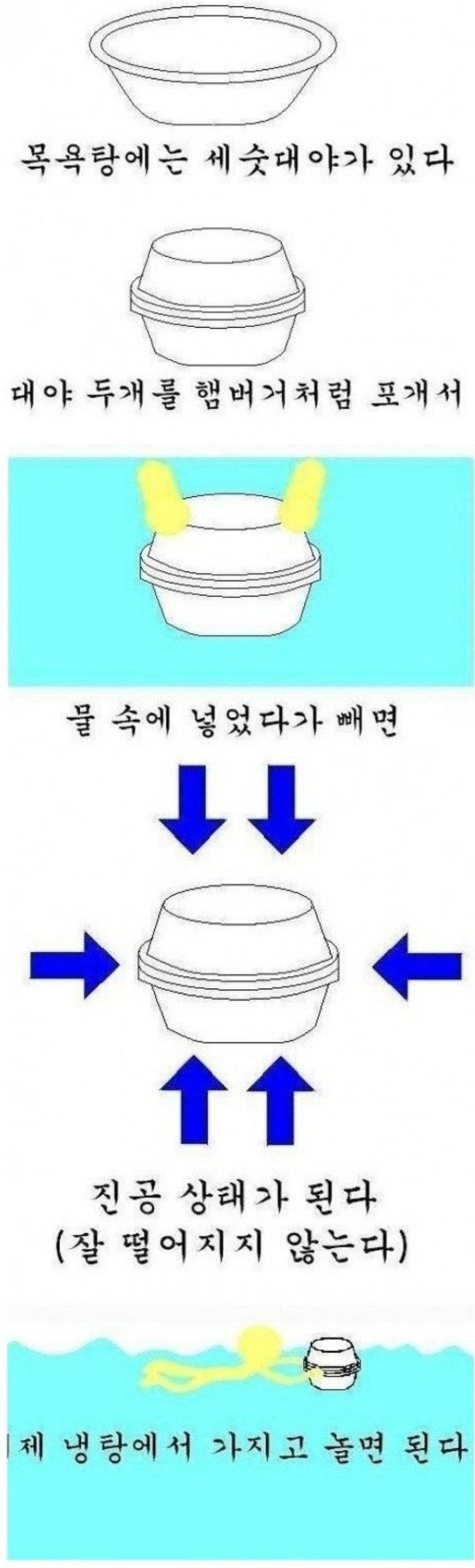 이렇게 바가지를 튜브? 삼아 수영을 하거나