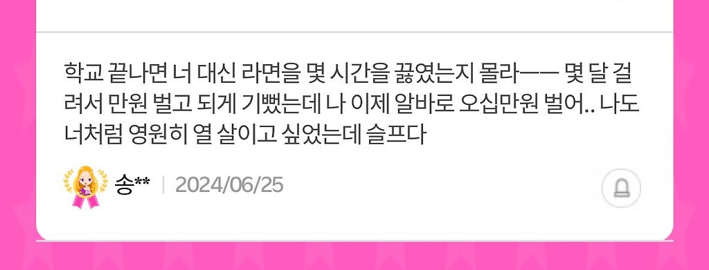 나도 너처럼 영원히 열 살이고 싶었는데 슬프다