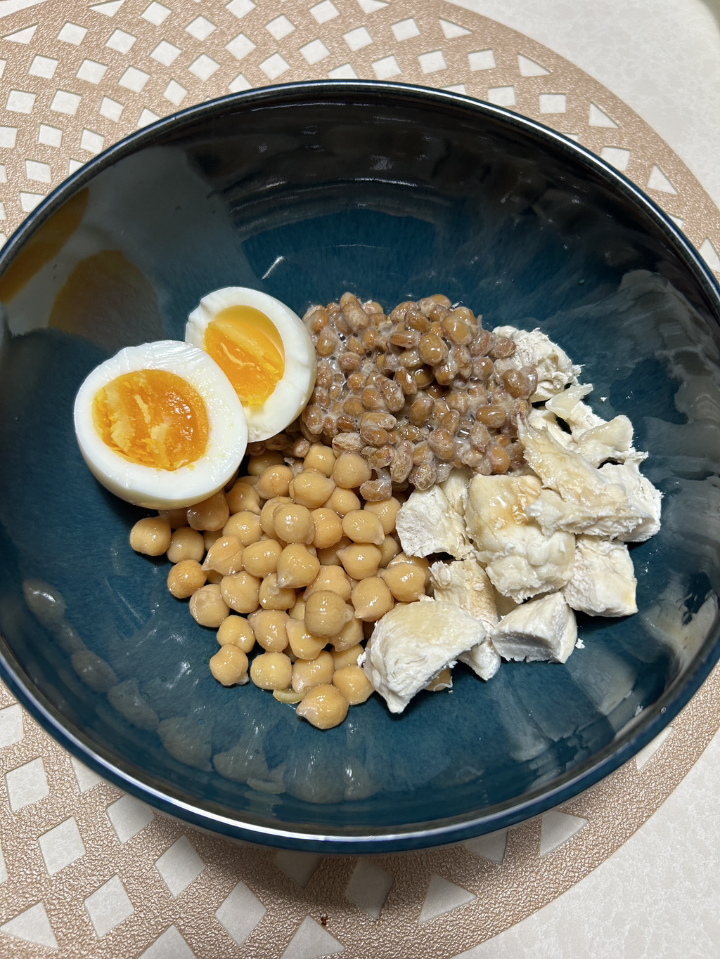 반숙란 병아리콩 낫토 닭가슴살 냠