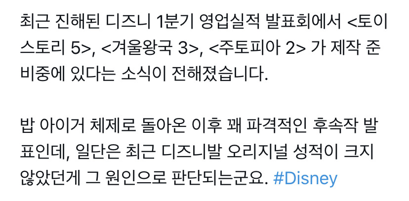겨울왕국3, 토이스토리5, 주토피아2 제작 준비중