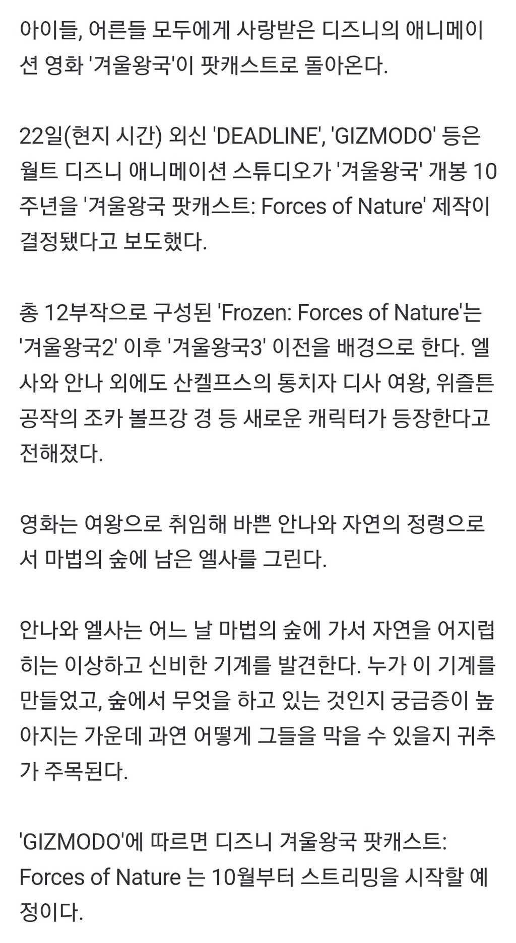 겨울왕국3 이전에 팟캐스트 12부작도 나온다 함
