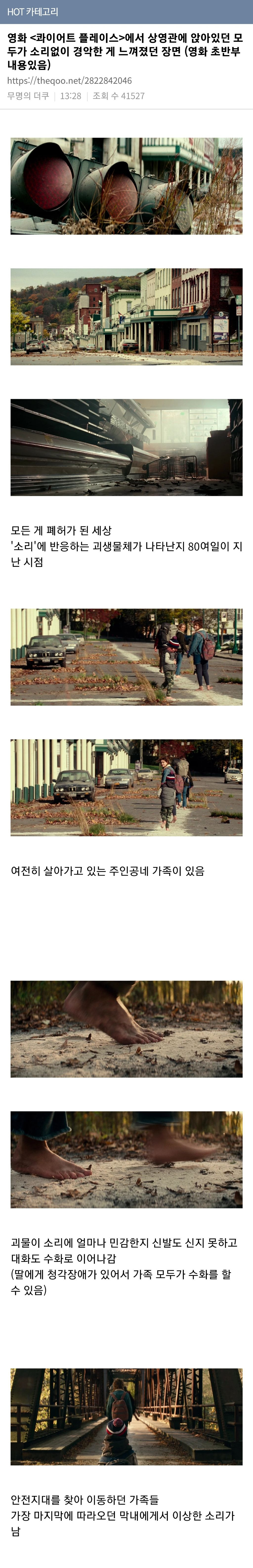 영화 <콰이어트 플레이스>에서 경악한 장면