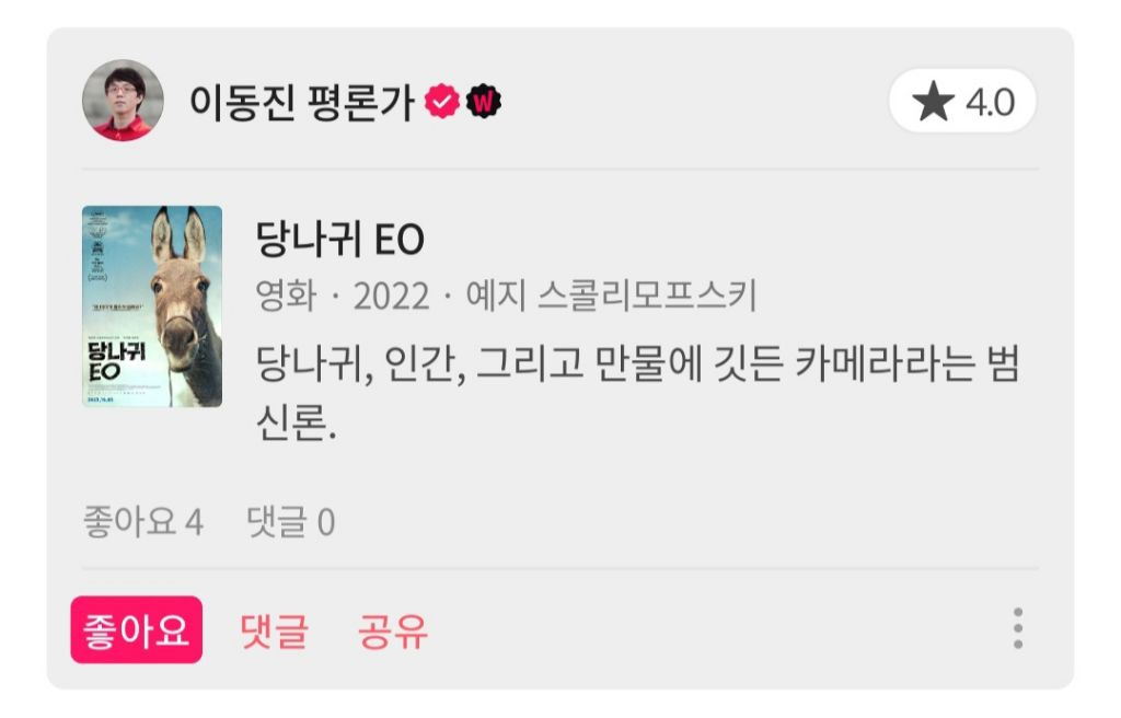 이동진 평론가 당나귀 EO 별점 및 한줄평