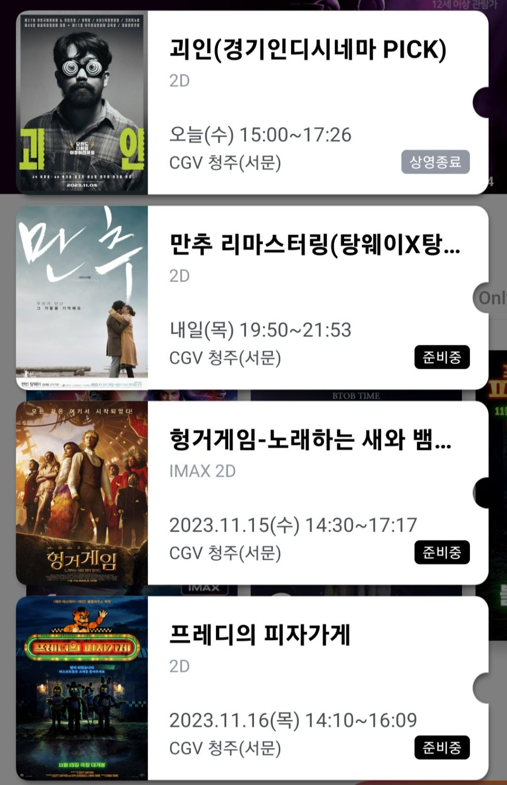 그리고 다음주에 개봉하는 영화 2편 추가로 더 예매했습니다ㅋㅋ