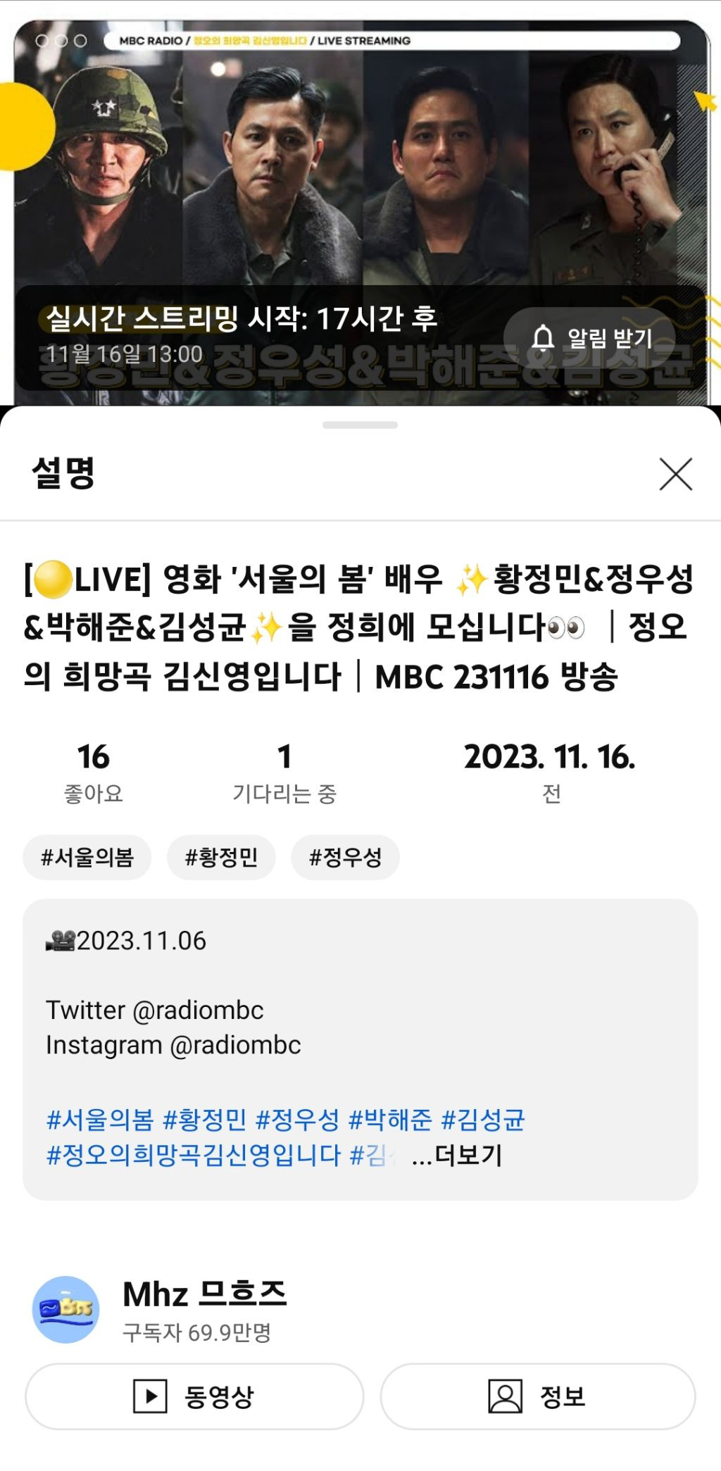 오 내일 라디오 정오의 희망곡 김신영입니다에 서울의 봄 배우들 출연하네요
