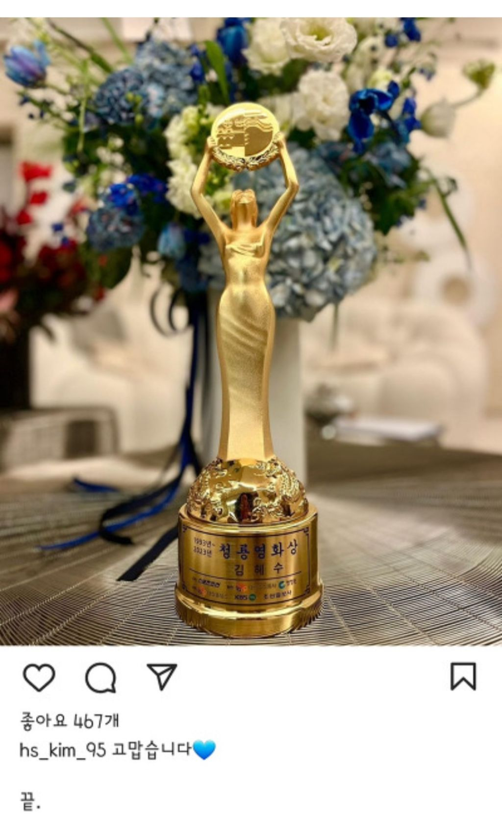 30년 동안 청룡영화상 진행한 김혜수의 소감