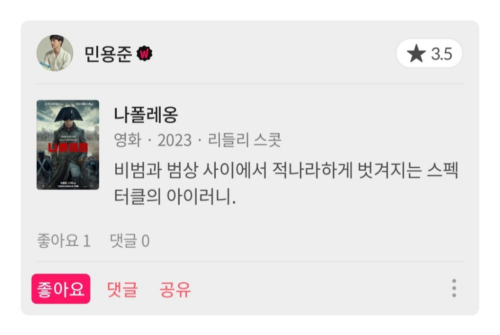 민용준 칼럼니스트 <나폴레옹> 별점 및 한줄평