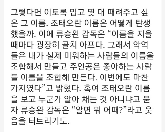 영화감독 류승완식 캐릭터 이름 짓는 방법