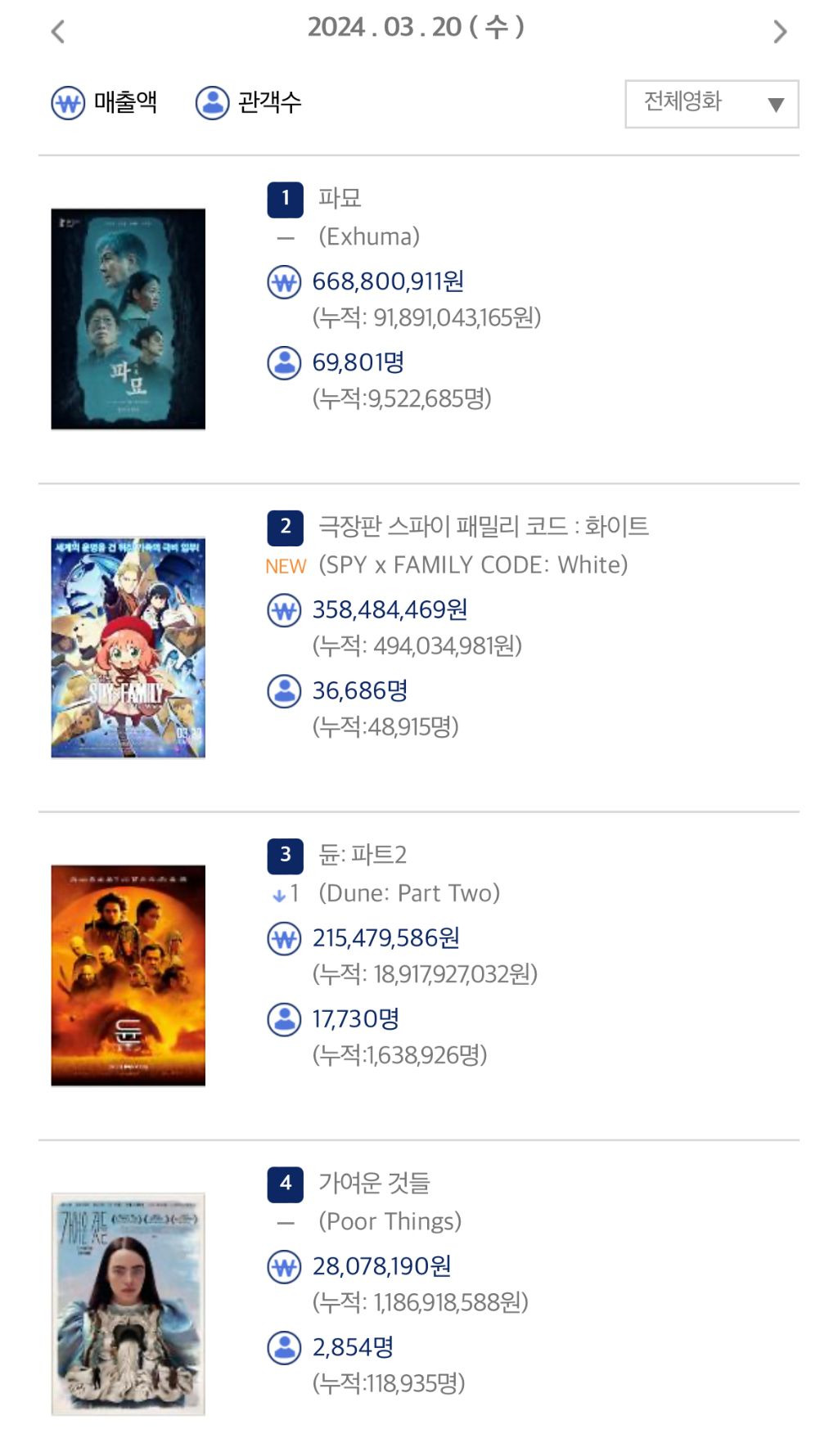 3/20 수 박스오피스