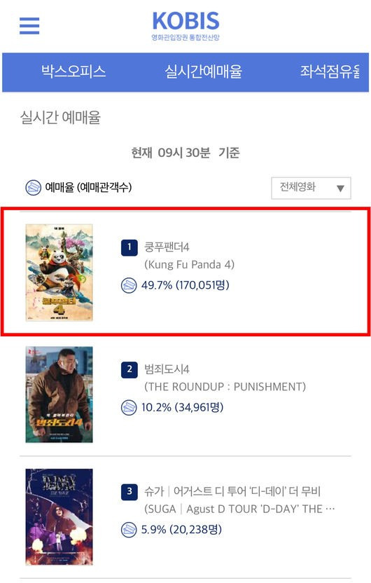 예매율 50%에 육박한 '쿵푸팬더4'는 4월 10일 전국 극장에서 만나볼 수 있다.
