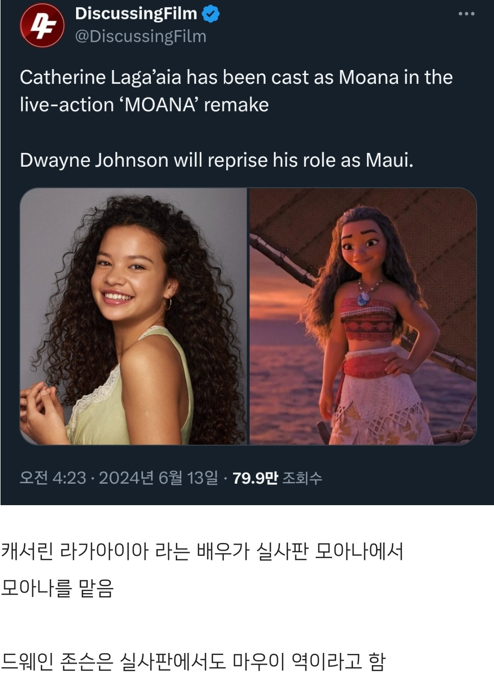 ??? : 실사판 모아나역은 모아나가 하는 걸로 정해졌대