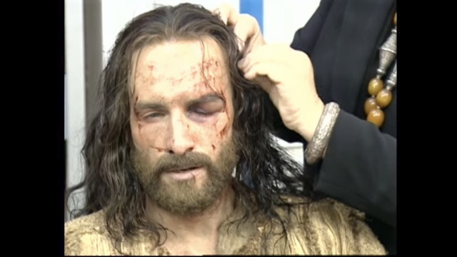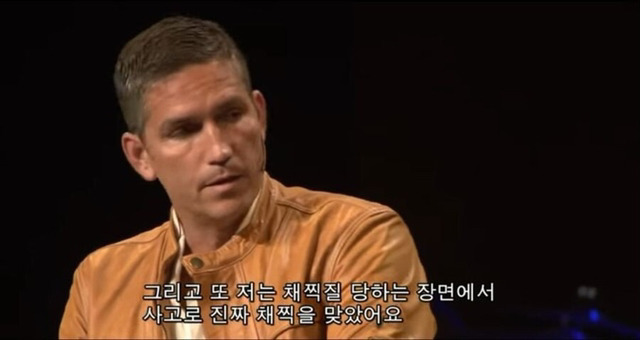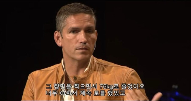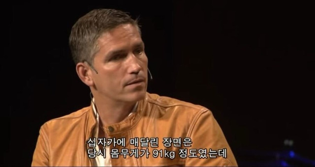 또 골고다 언덕으로 향하는 장면에서는 68kg이나 되는 십자가를 짊어졌는데